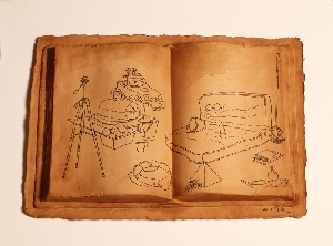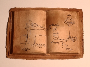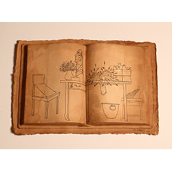 Text Transfer on handmade paper with wooden stand, 92 pages, Unique book.