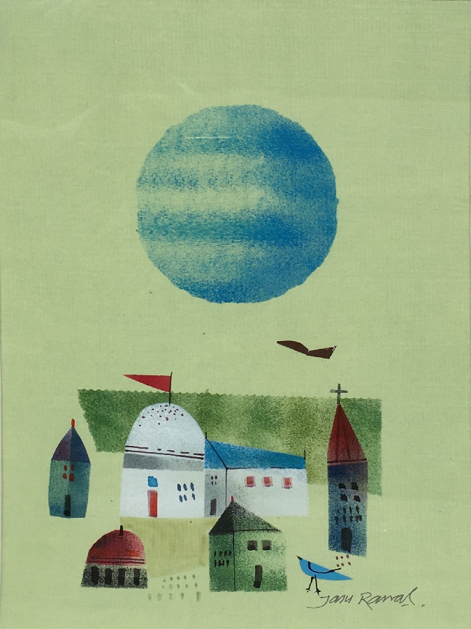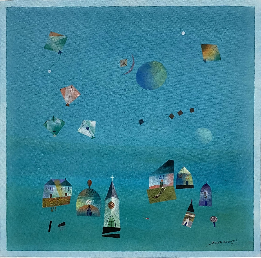 Jasu Rawal was a painter, born in the ancient fortified town Halvad in 1939. Known for his vivid landscapes, he grew up watching his mother paint in the colourful suburbs of Rajkot. His school teacher gave him a book by Paul Klee, a Swiss-German artist from the 20th century. Klee painted iridescent landscapes with rich colours and forms that impressed young Rawal deeply. Rawal set out to learn arts, and completed BFA and MFA at College of Fine Arts in Baroda.