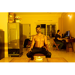 Sandeep has held three solo exhibitions of his photographic work: Singularity at Gallery Sumukha, Bangalore (2018), Let me add something in my melody at Villa Renata, Basel (2022), and Toy Boy from Malabar and his journey to wine, cheese and cholocates at Gallery Sumukha, Bangalore (2024). His photographic work has been exhibited in several group shows including at Khoj Studios, Delhi (2021), Kunst Museum, Wolfsburg (2022), and Serendipity Art Festival, Goa (2023). His video work has been showcased at the Bangalore Queer Film Festival (2019), the Palace International Queer Film Festival, Bristol (2020), and the festival of Video Art by Indian Contemporary Artists (2021), among others. In 2019, Sandeep was awarded the Paradise Air arts residency in Tokyo. In 2020, he won the prestigious Inlaks Fine Art Award in India. In 2021, he was one of the five artists selected for the Khoj Peers Residency in Delhi. In 2022, he was awarded the Pro Helvetia Studio Residency Award, which he undertook at the Atelier Mondial in Basel. Later in 2022, he took up the Robert Bosch Crossing Borders grant, which he had been awarded during the pandemic, to document alternative families in Berlin. In 2023, he was chosen as one of five Serendipity Arles Grantees, in recognition for lens-based media work in South Asia. Upcoming: in 2024, Sandeep will be the Artist-in-Residence at the Ontario College of Art & Design (September’24-November’24), a fellow of Sweden’s International Programme for Visual and Applied Arts (November’24-February’25), and will exhibit four works at a show devoted to colonialism at the Swiss National Museum, Zurich (April’25).