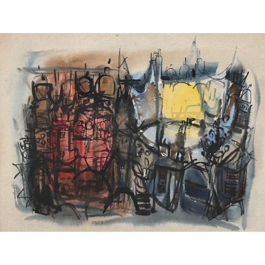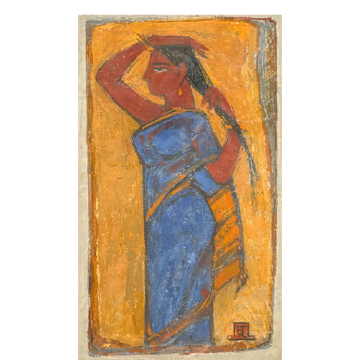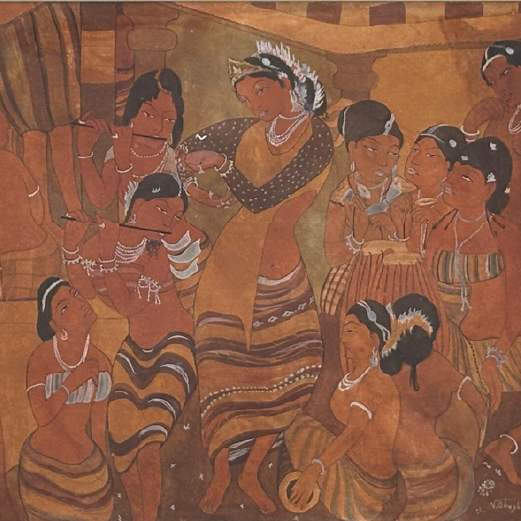 Born in a small village in Maharashtra, he discovered art and left behind a farming life for the capital of Bombay to undergo formal training at the JJ School of Art. The young Bhushan found a resonance in the turbulent yet impassioned mood of pre-Independent India. In art, the nationalist ideas of the Bengal School were spreading fast into the British academic training that was imparted at JJ School. Along with mastery over western academic realism, his other works of this period in the 40s are in the traditional Indian styles. Yet, even in these early works we can see an urge to break out of given structures in the way a picture plane tilts unexpectedly or the surface breaks into areas of colour. In 1954 he went to Belgrade and there he painted mostly still life, landscape and portraits but with a dramatic change in treatment. Learning the techniques of egg tempera and mosaic gave him a new understanding of form and pictorial surface. Within the genres of still life, landscape and nude/figure studies he experimented with tools and techniques, developing his specific style of layering translucent colours over and over, with broad brush and palette knife. He applied this understanding to his early commission to copy the deteriorating Ajanta Frescoes in the egg tempera medium. This hard won aesthetic he pursued through the 1970’s with an exploration into complete abstraction, returning to the figure in the 80’s and 90’s, working in watercolour and egg tempera, mediums he now used with great freedom. The generations of artists he has mentored at College of Fine Arts, Hyderabad, like Laxma Goud, Vaikuntam, Kavita Deuskar, and Devraj Dakoji to name just a few, speak of his deep influence as an artist and teacher.