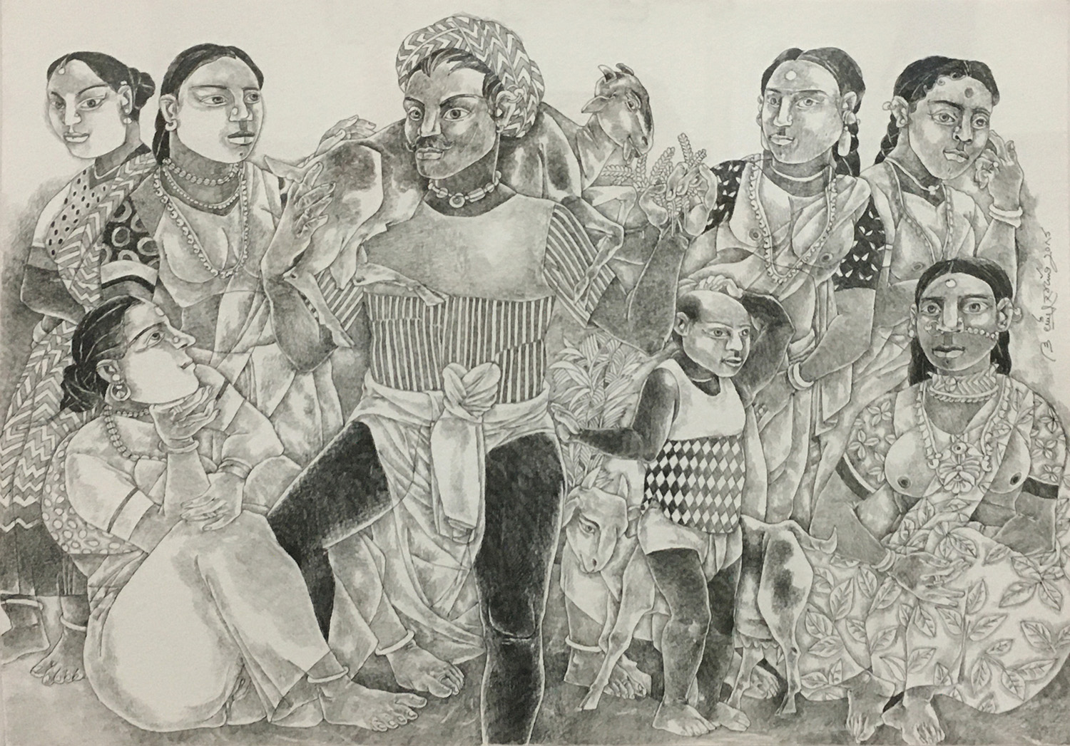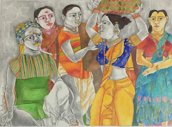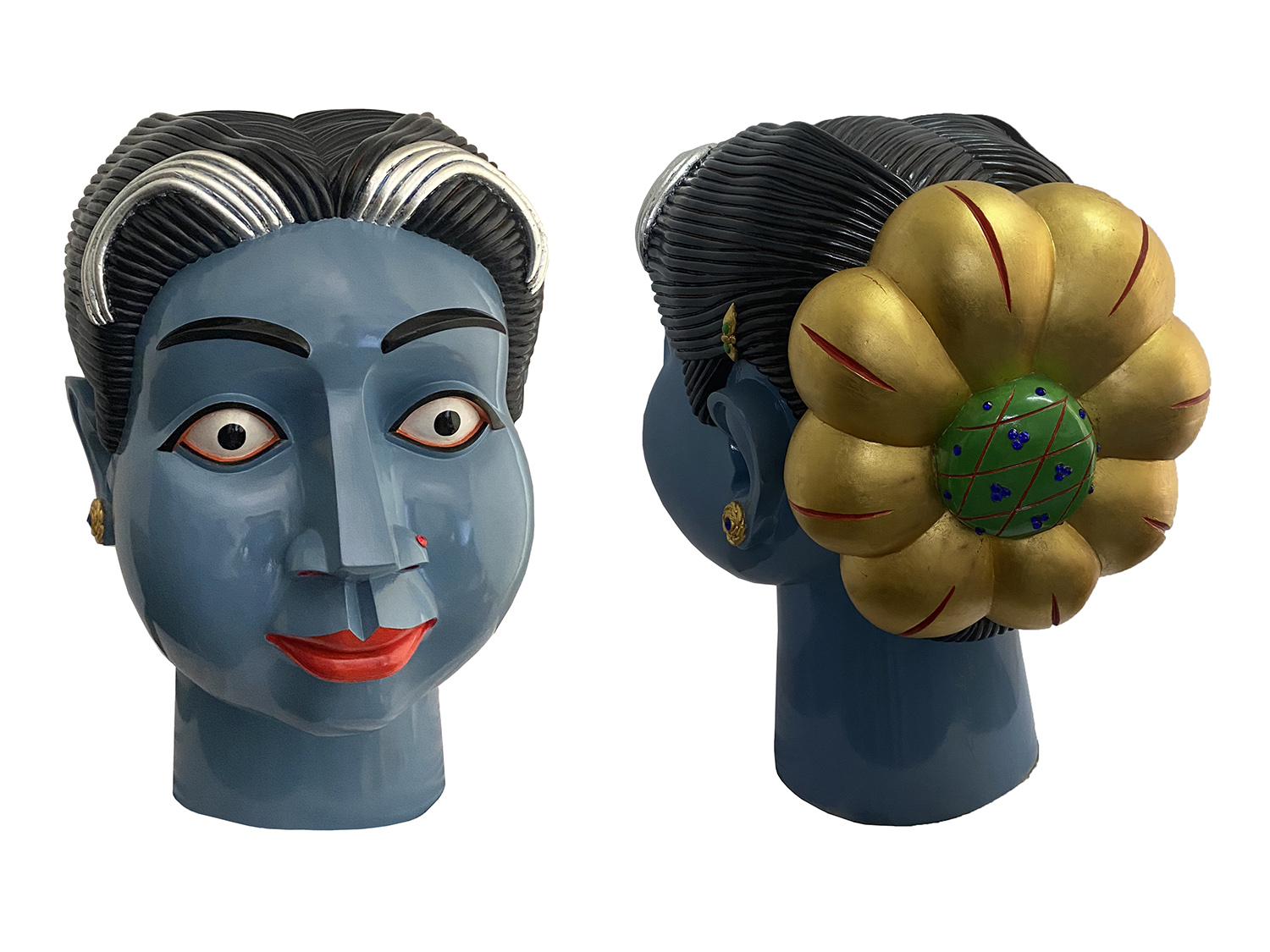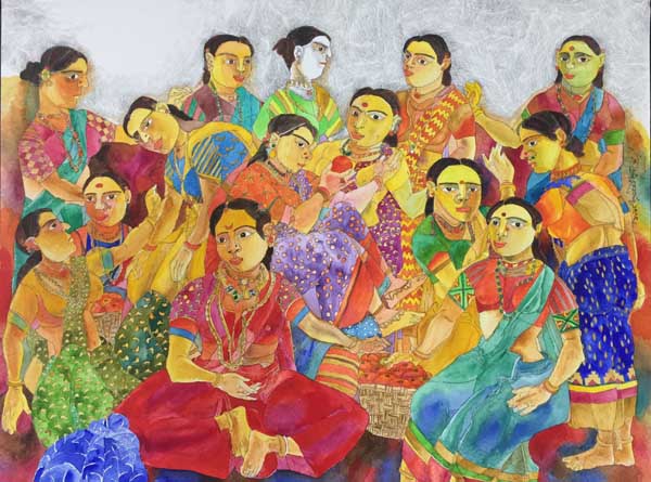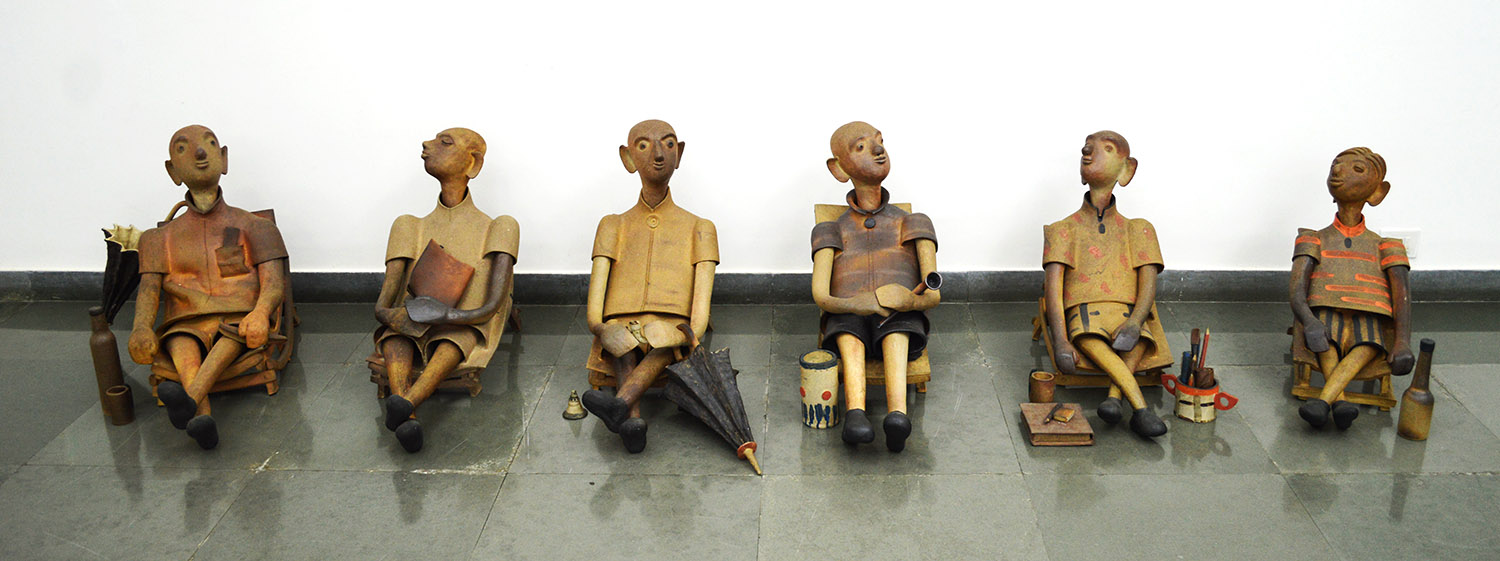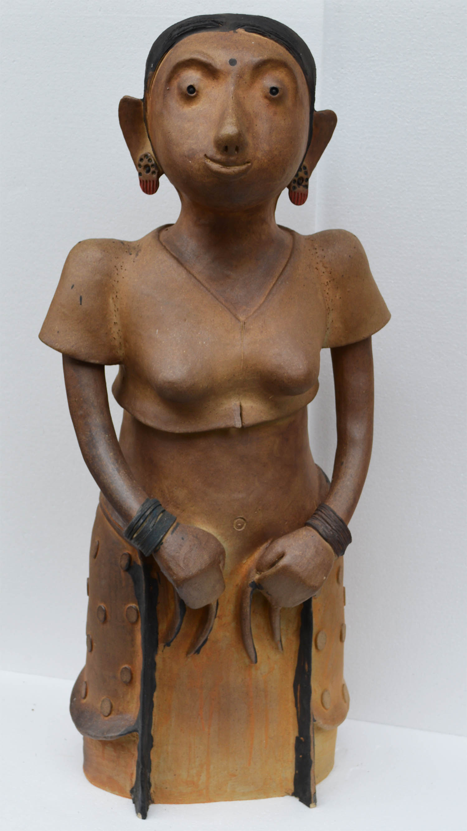 A first glance at G Ravinder Reddy’s sculptures fixes one in time and space. His charismatic female figures beaming with bright colours and a fixed stare draws people to his mind and material.