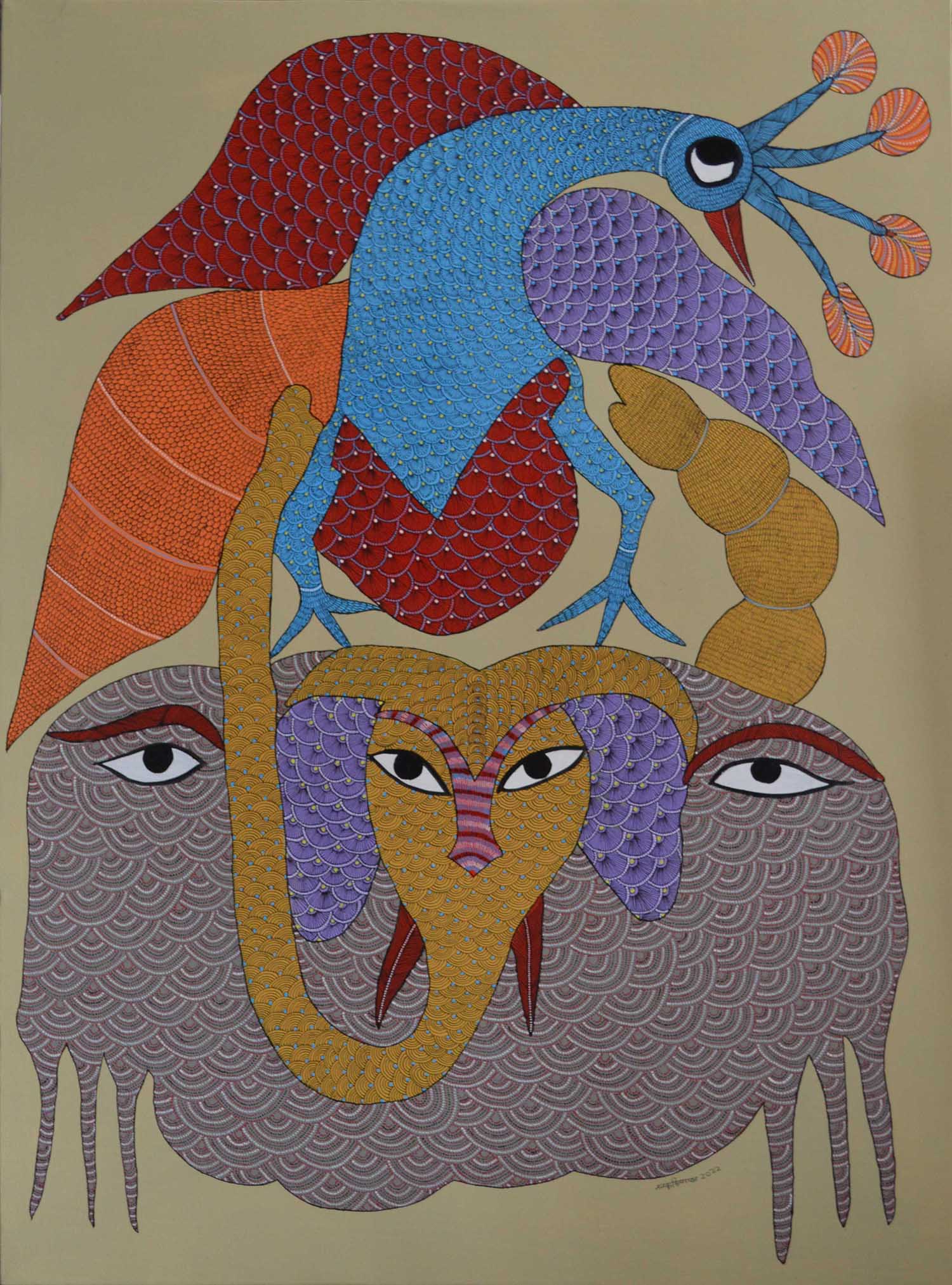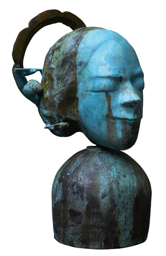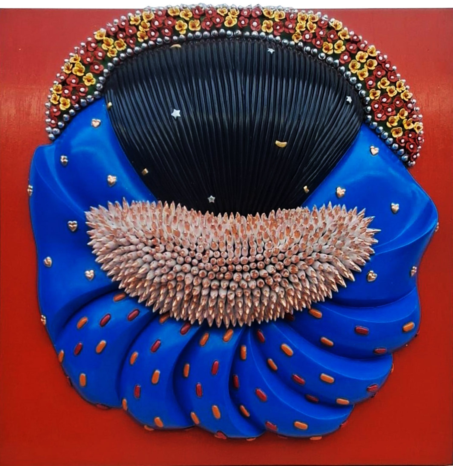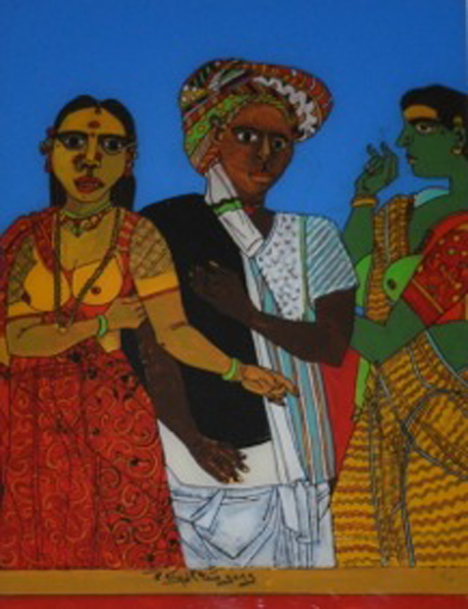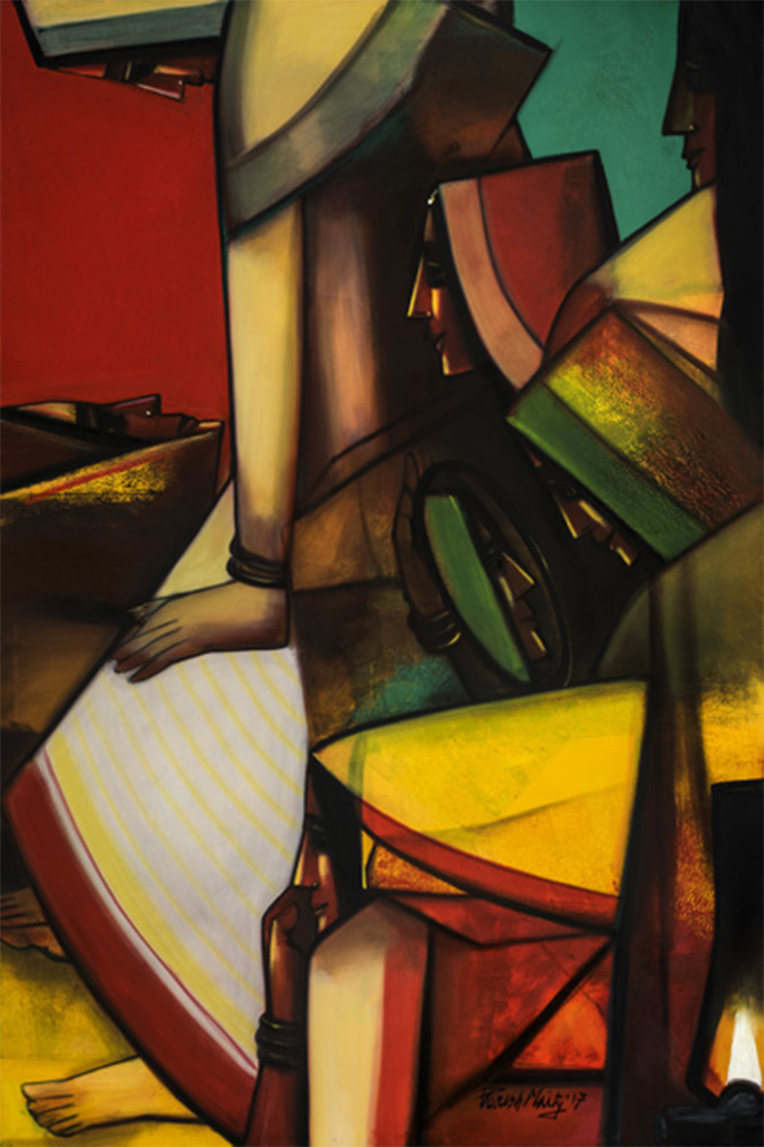A first glance at G Ravinder Reddy’s sculptures fixes one in time and space. His charismatic female figures beaming with bright colours and a fixed stare draws people to his mind and material.