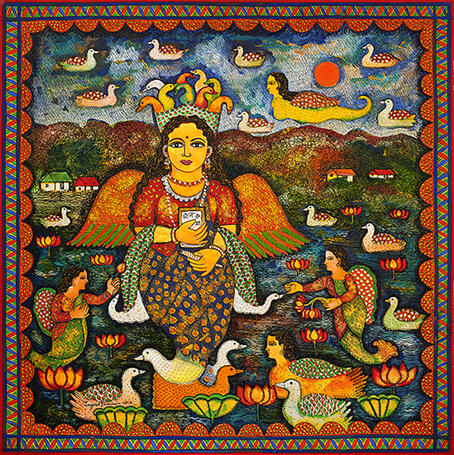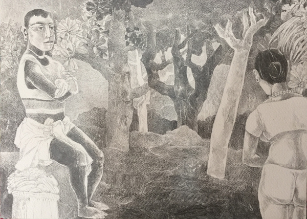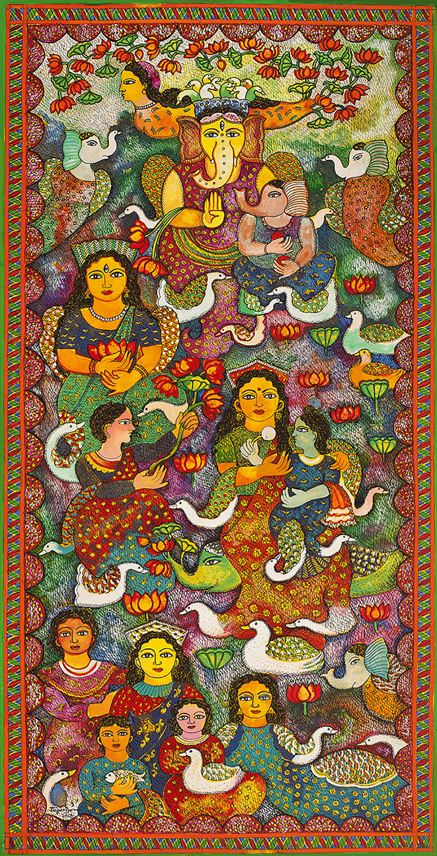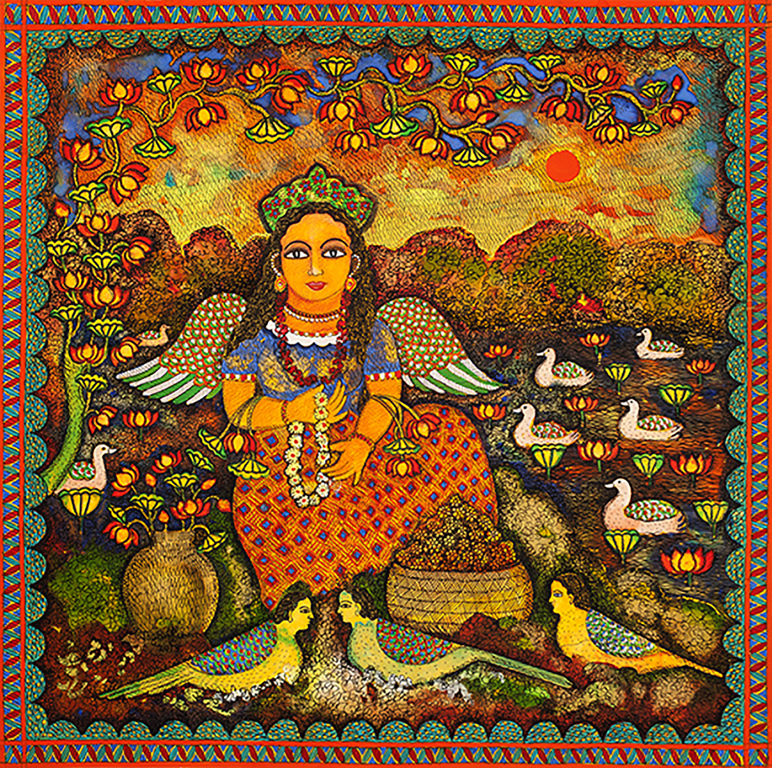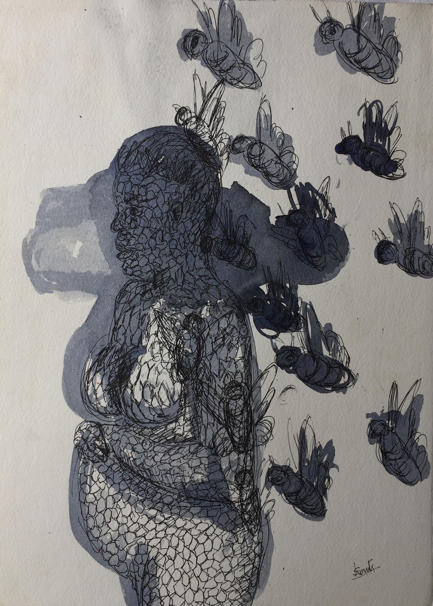 A first glance at G Ravinder Reddy’s sculptures fixes one in time and space. His charismatic female figures beaming with bright colours and a fixed stare draws people to his mind and material.