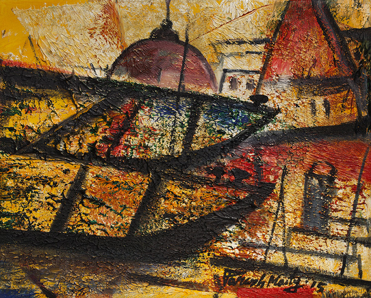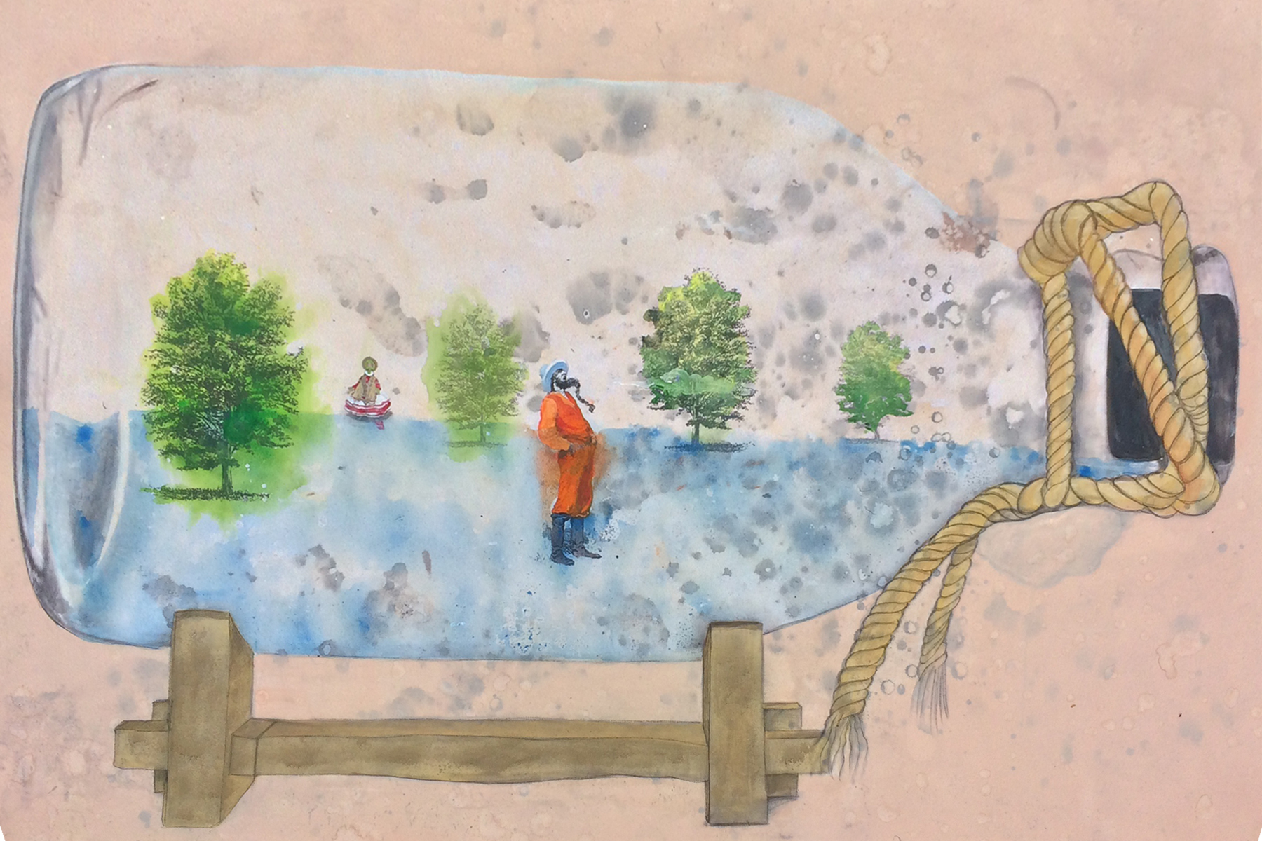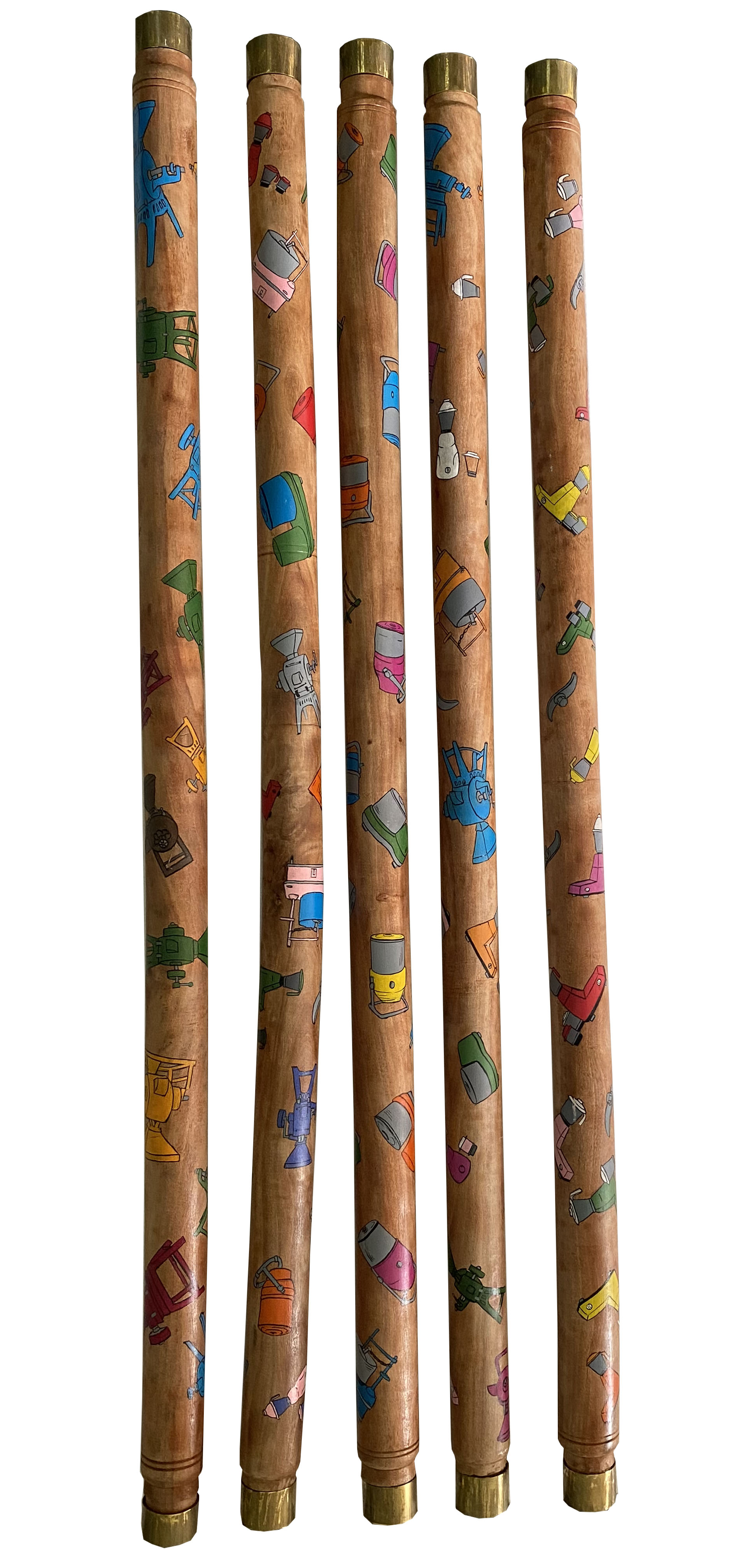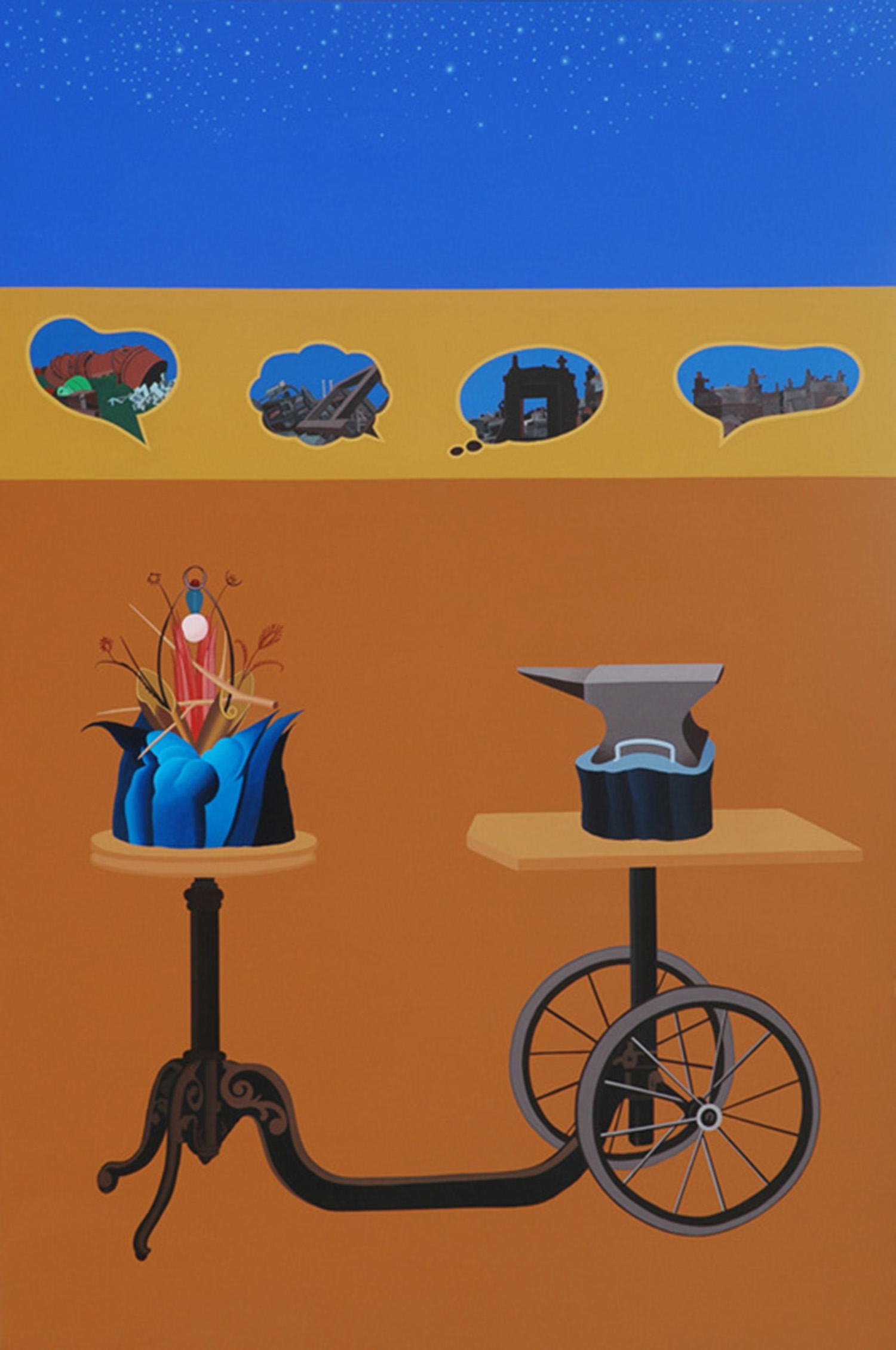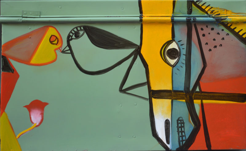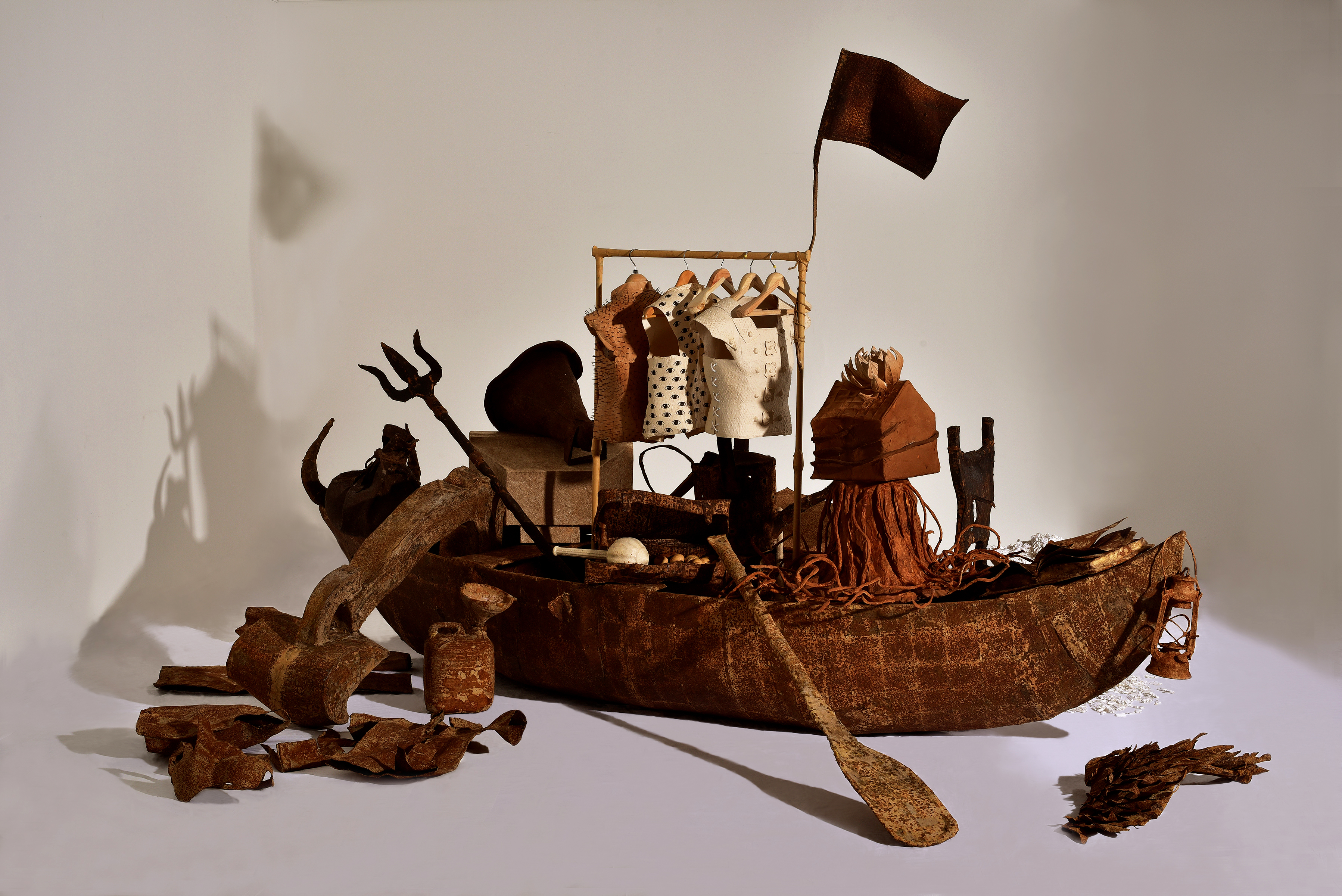 Mild steel, fiberglass, marine plywood, paint, polyurethane coat