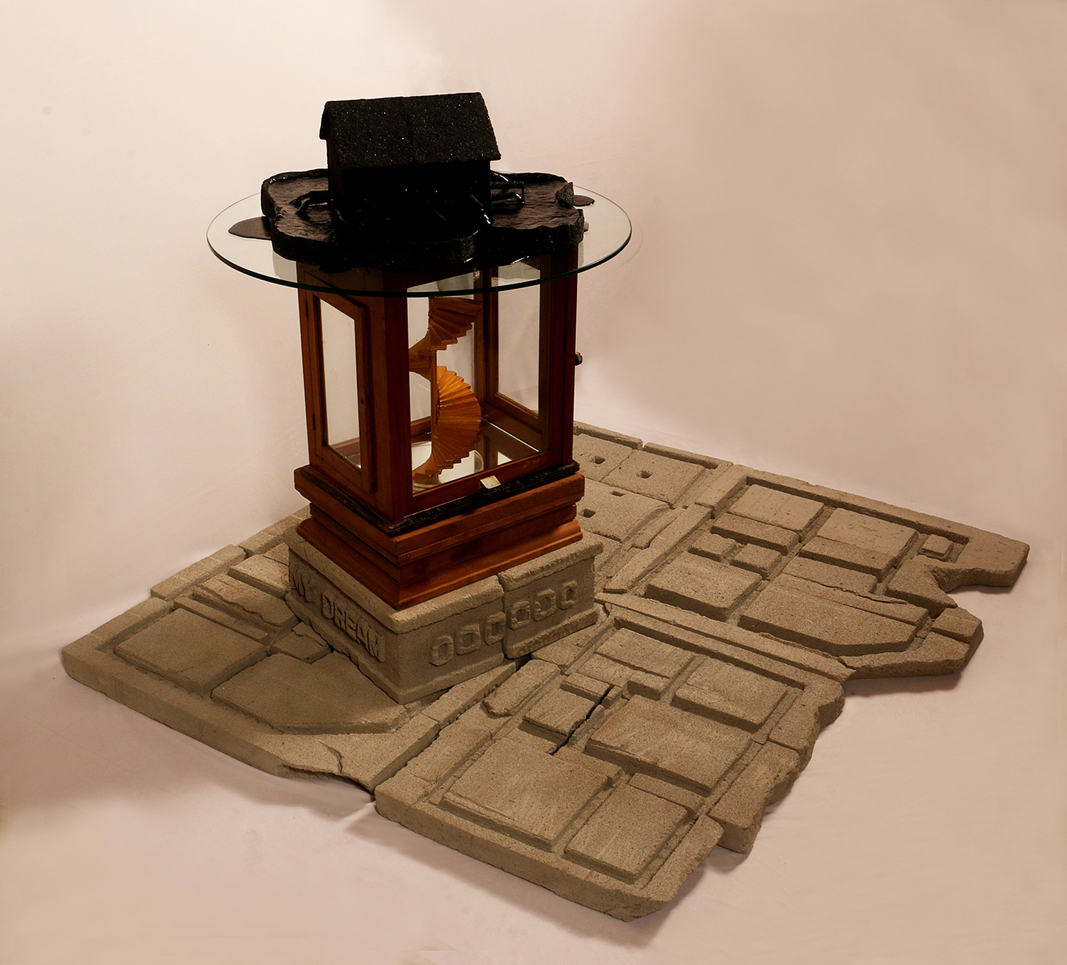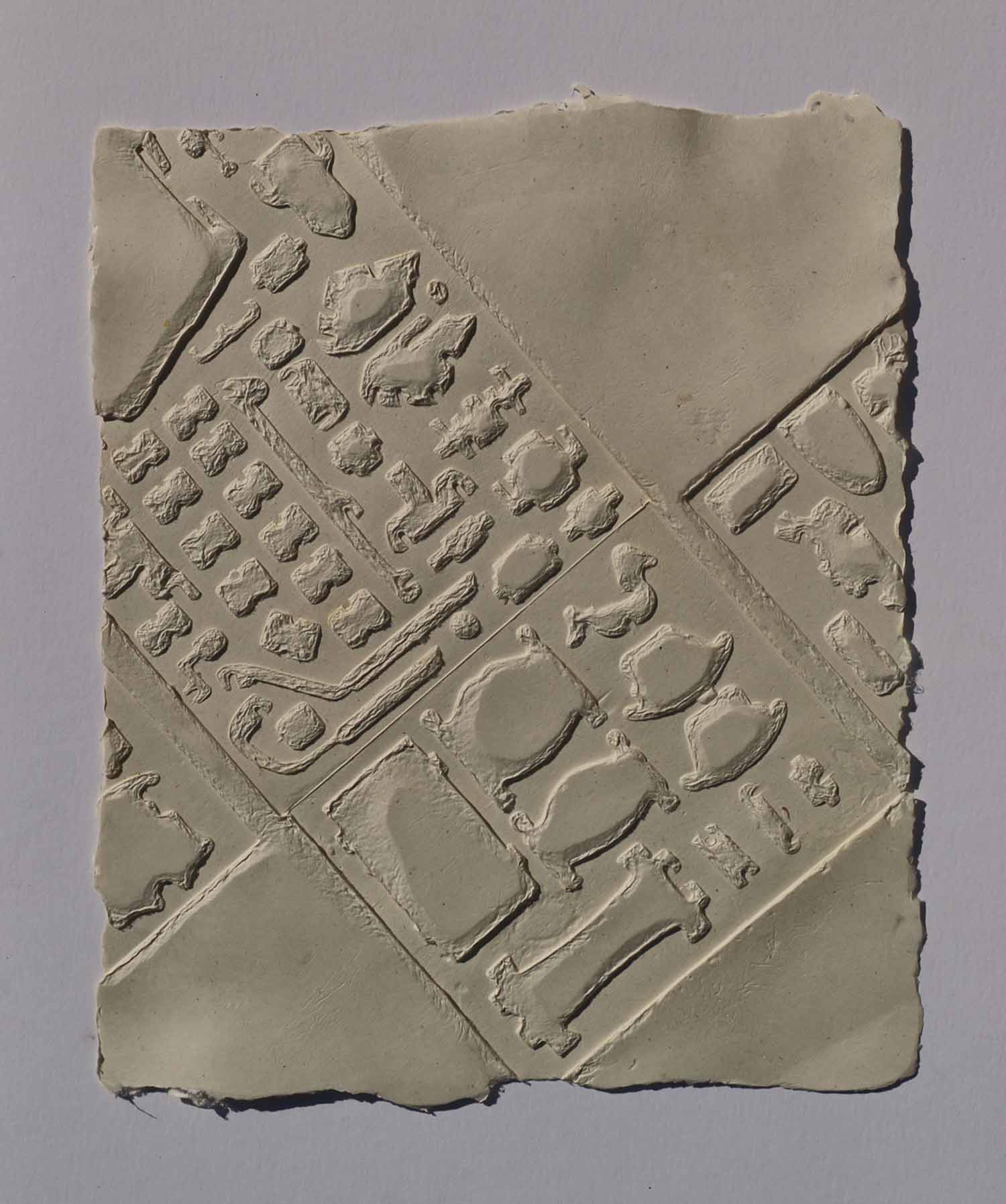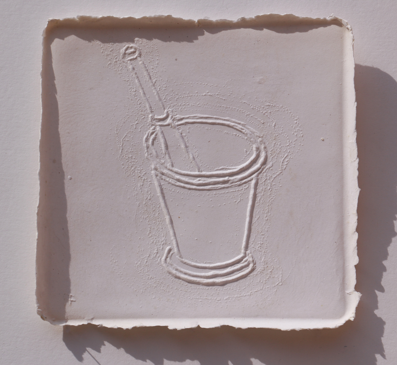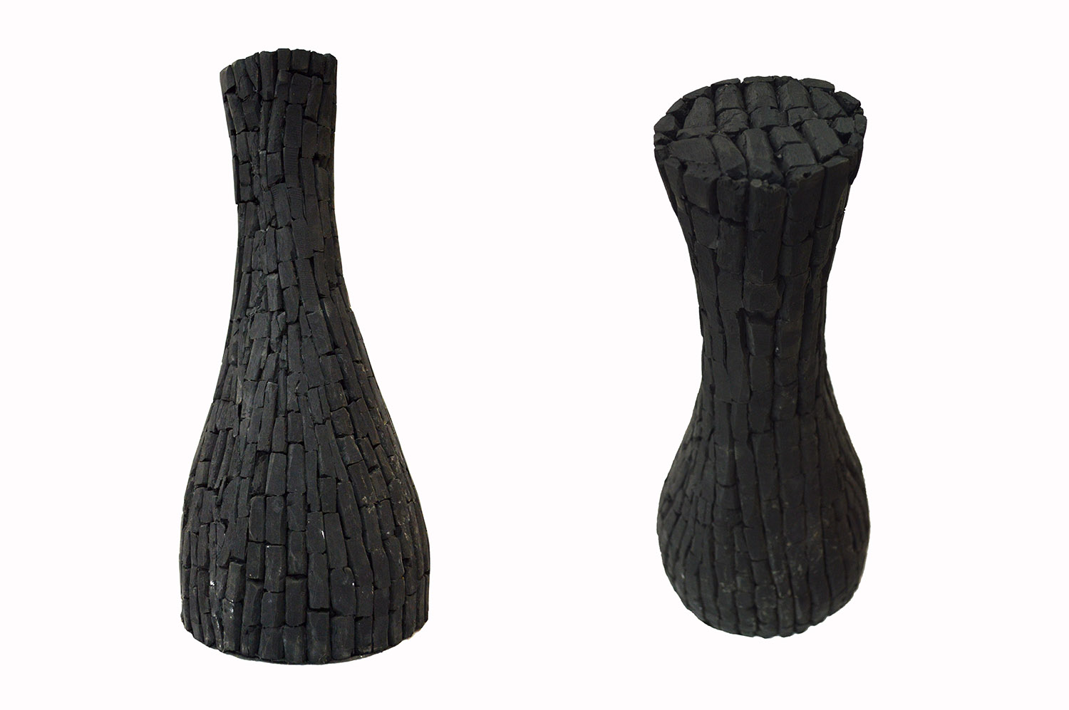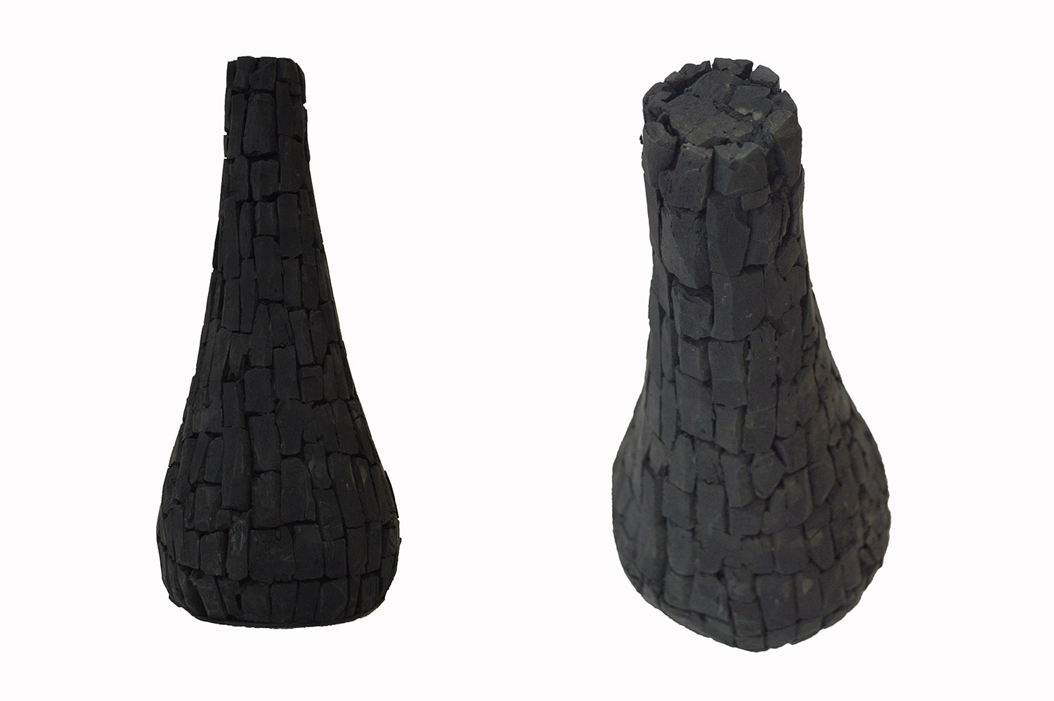 Paper pulp, cement, wood glue, aluminium, floor paint, clear coat