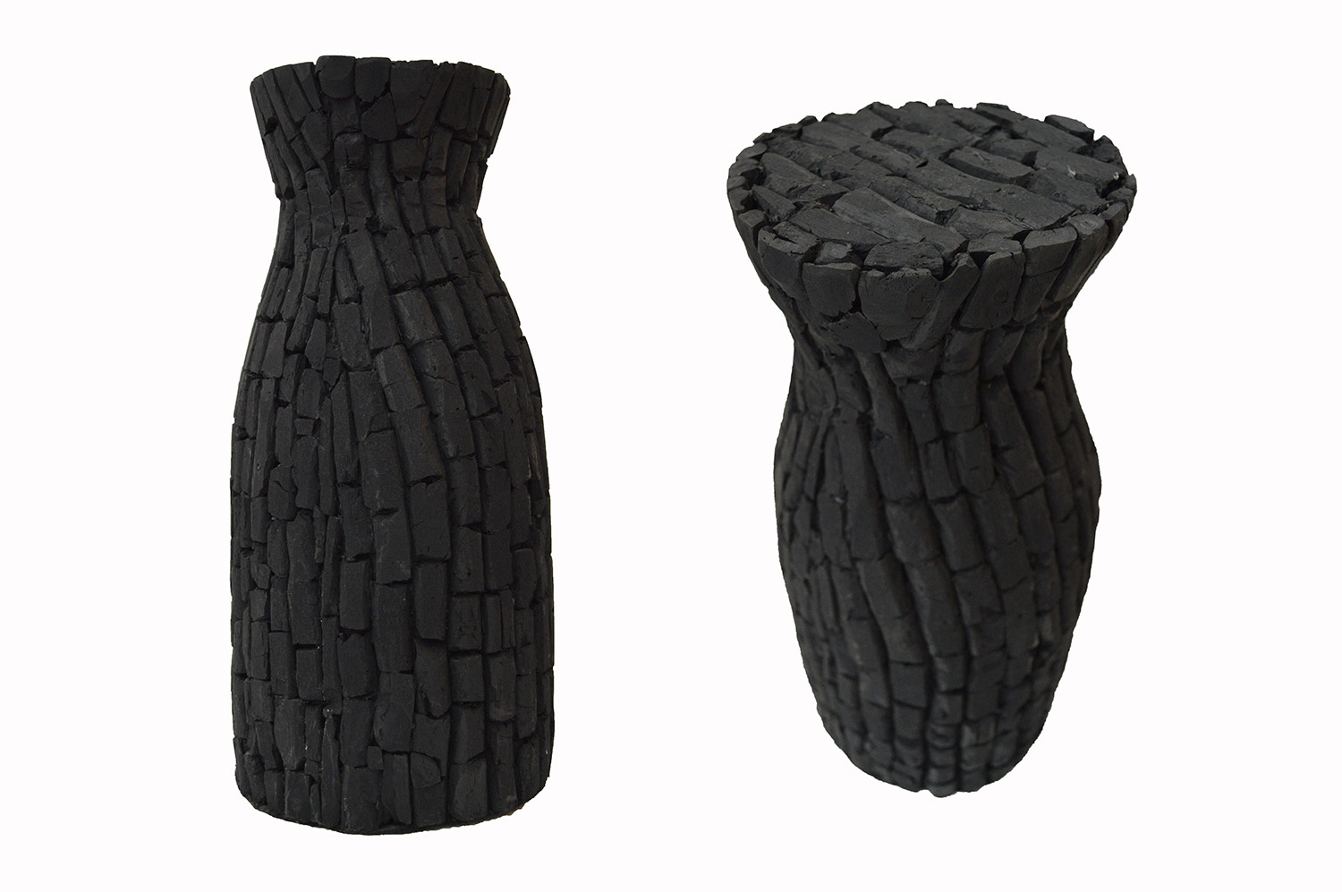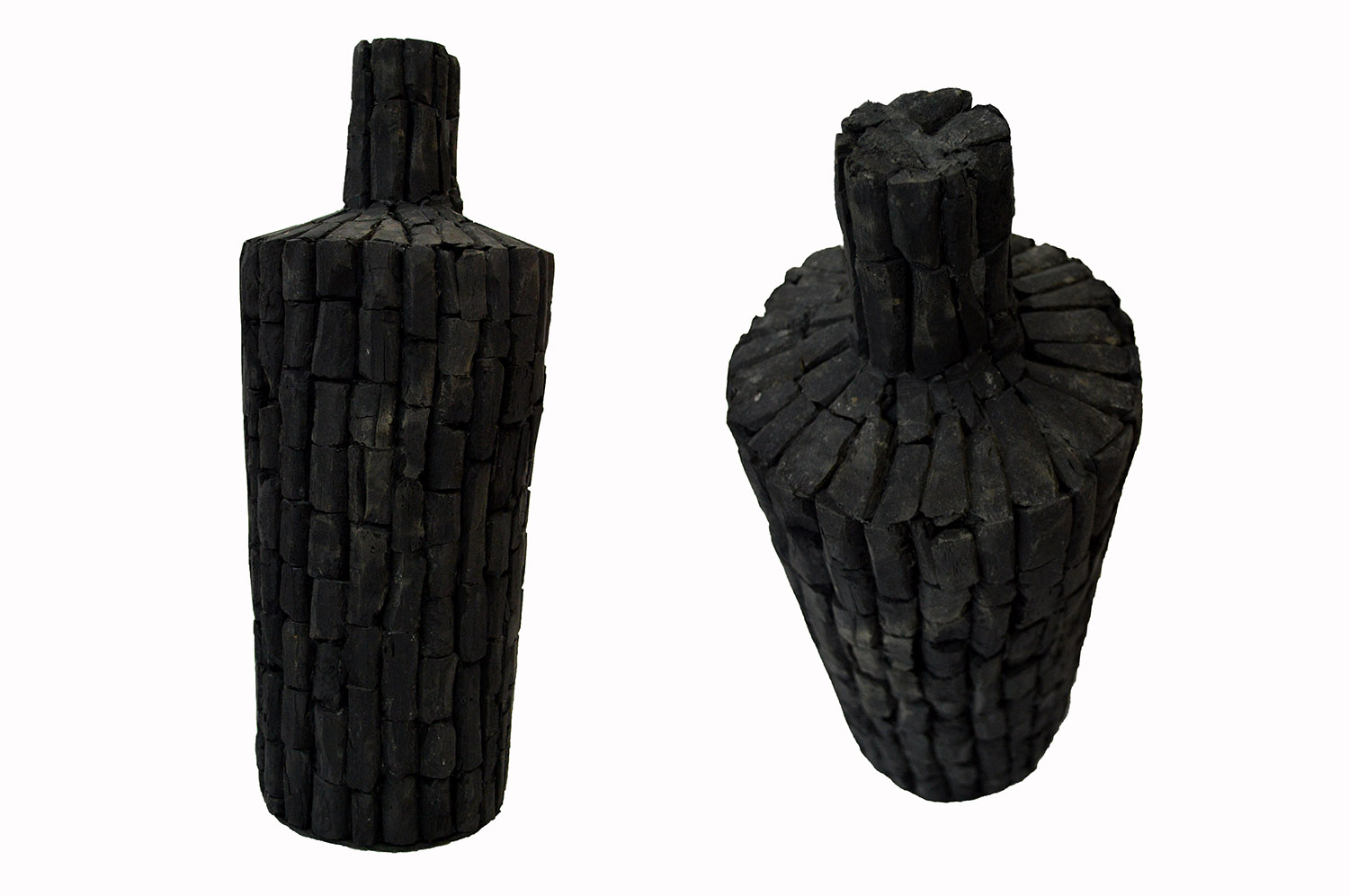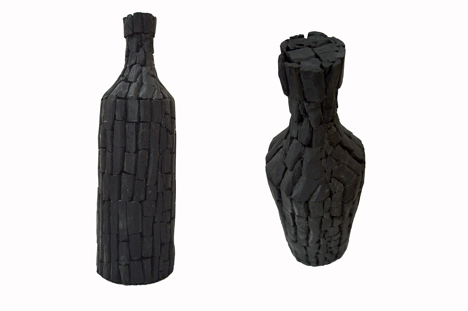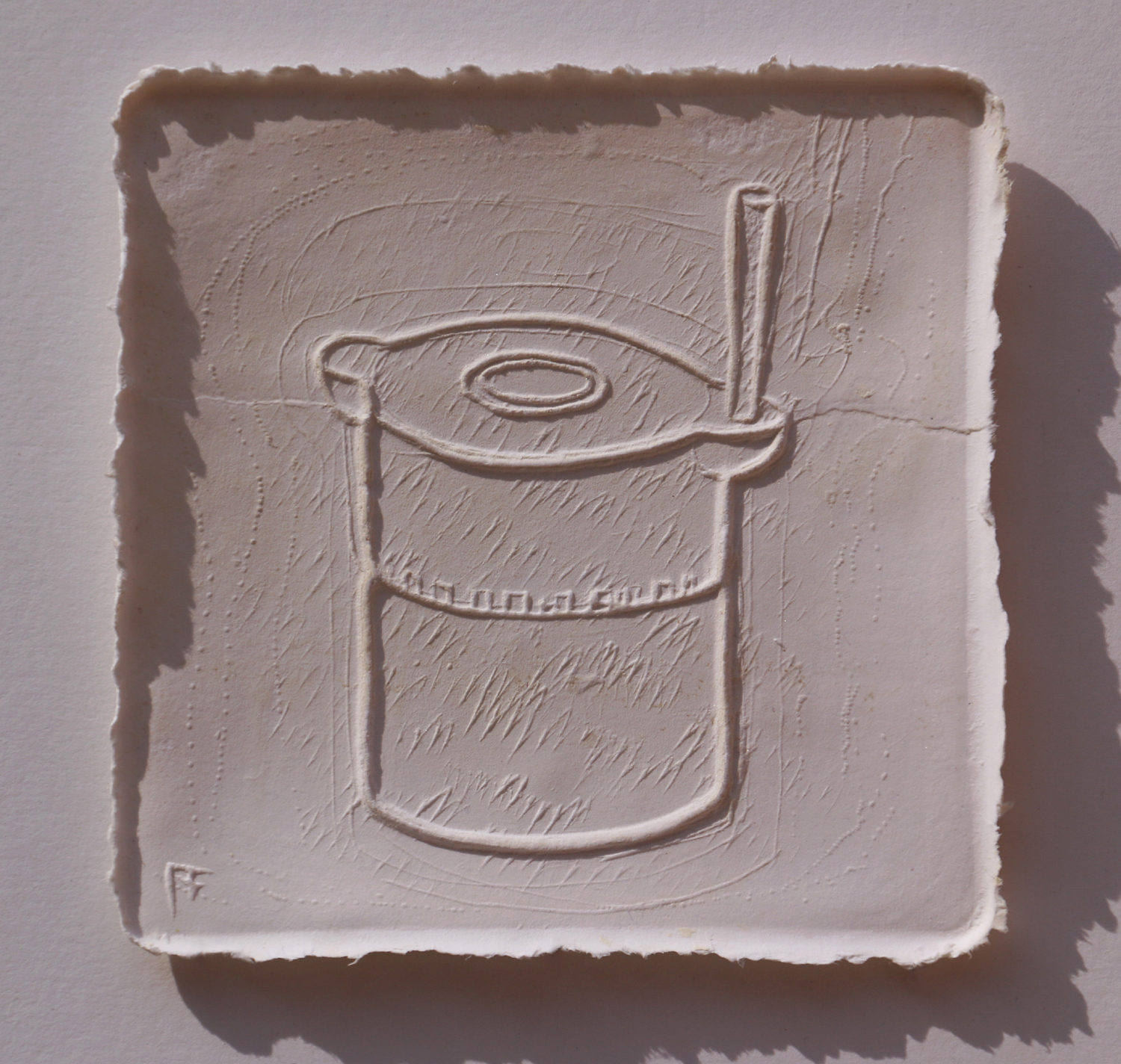 Paper pulp, cement, wood glue, aluminium, floor paint, clear coat