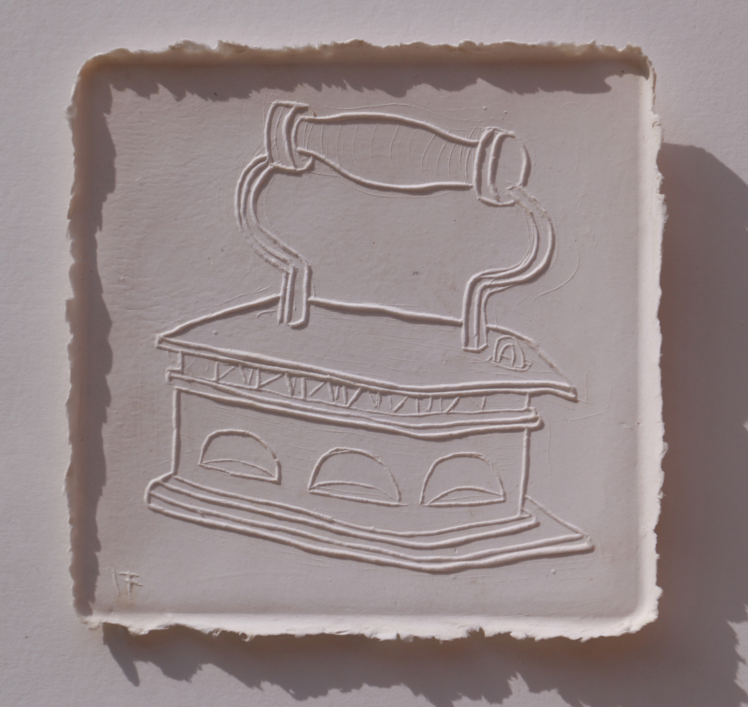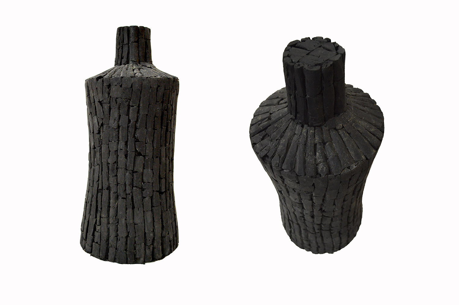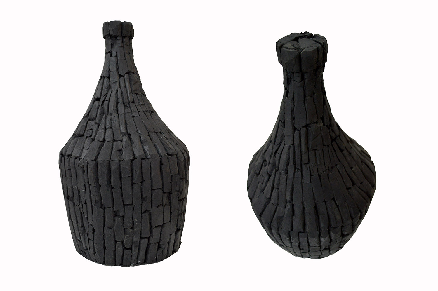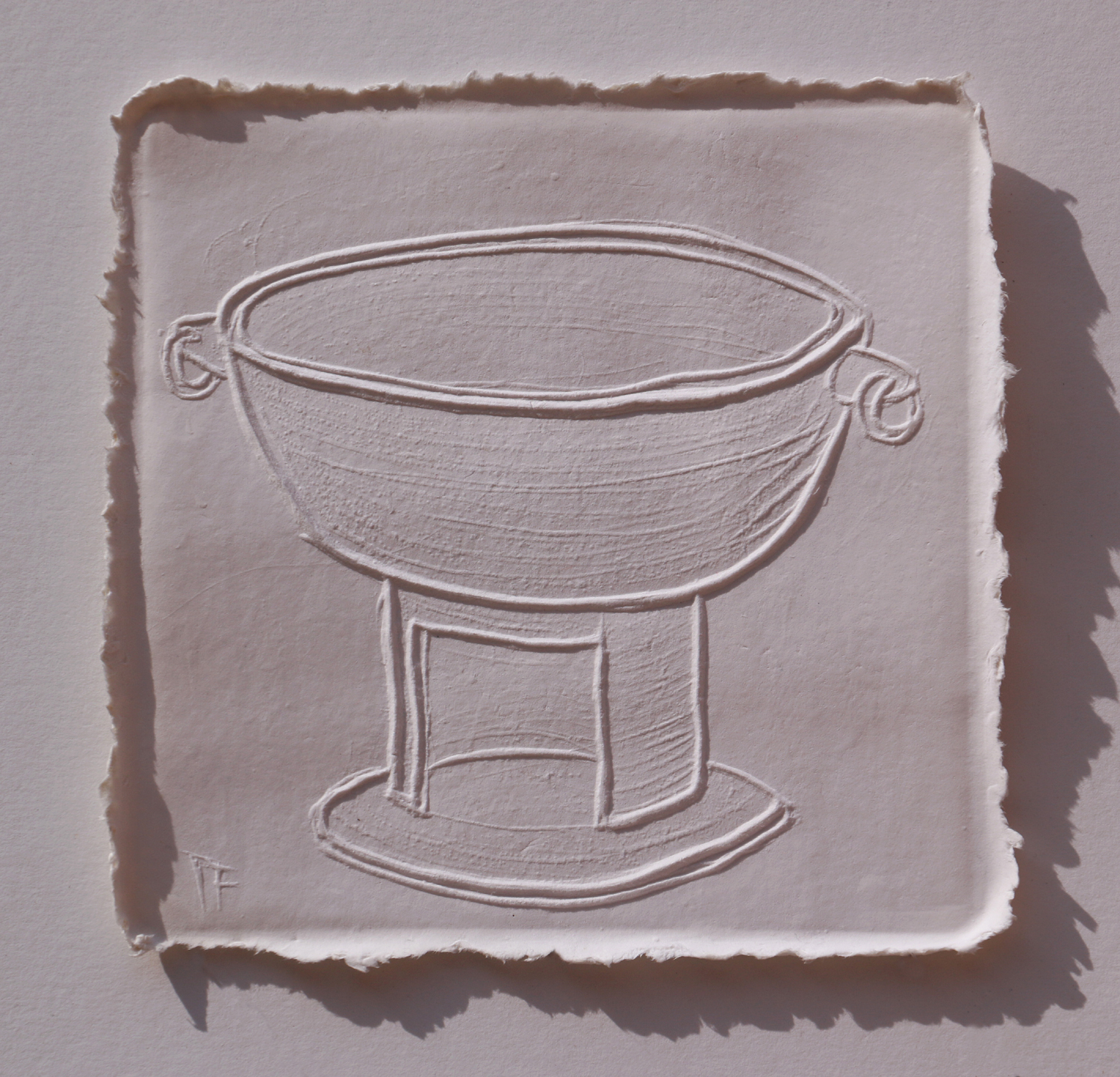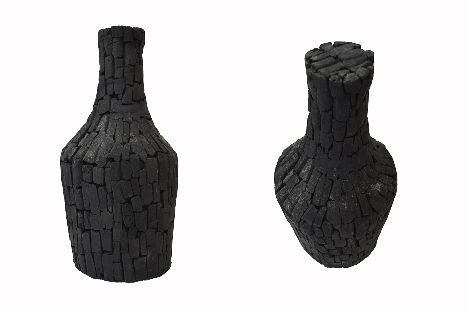 Paper pulp, cement, wood glue, aluminium, floor paint, clear coat