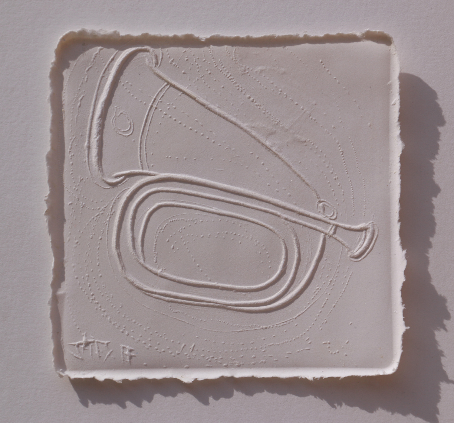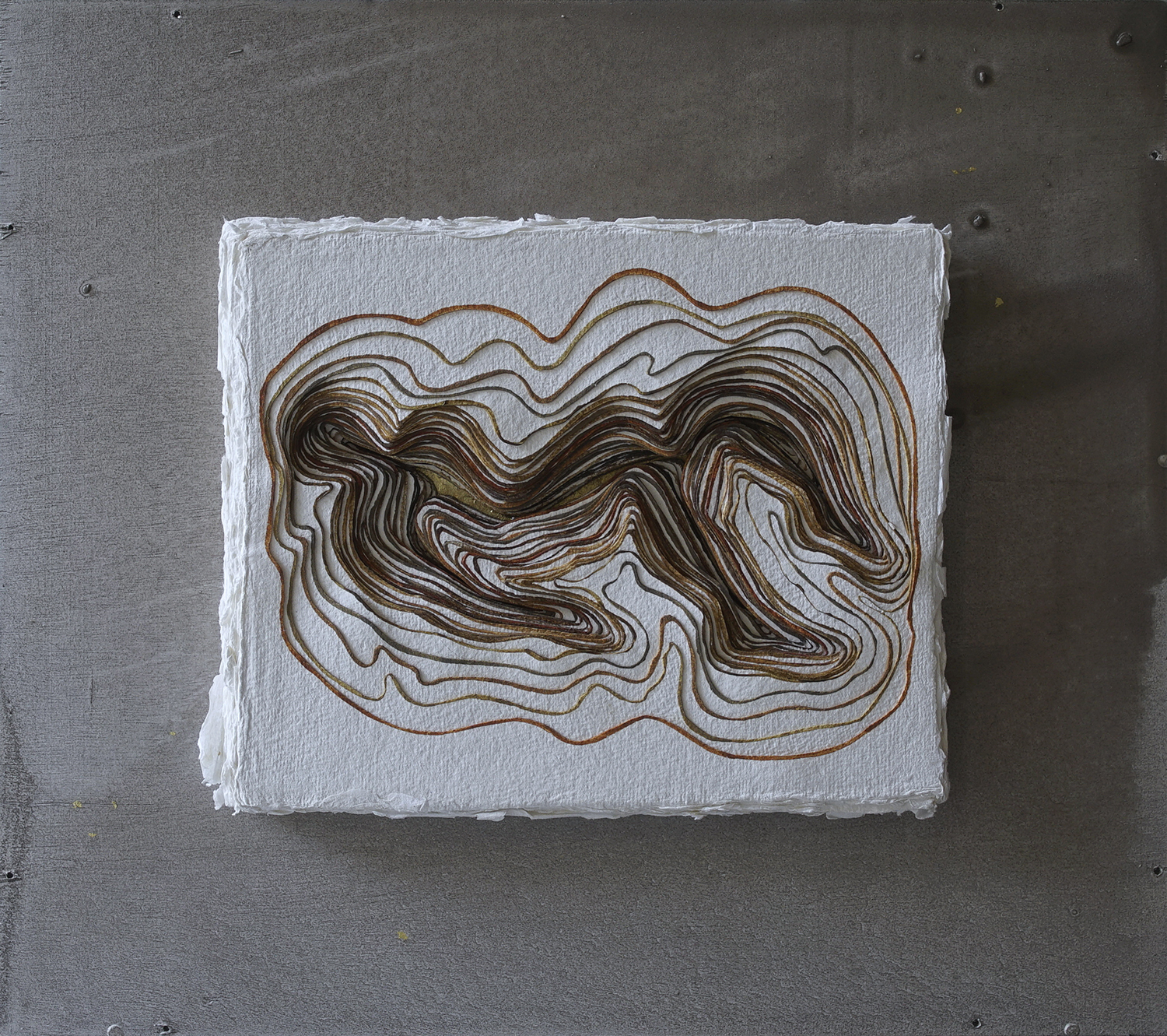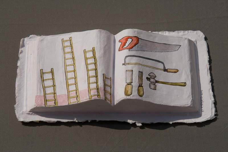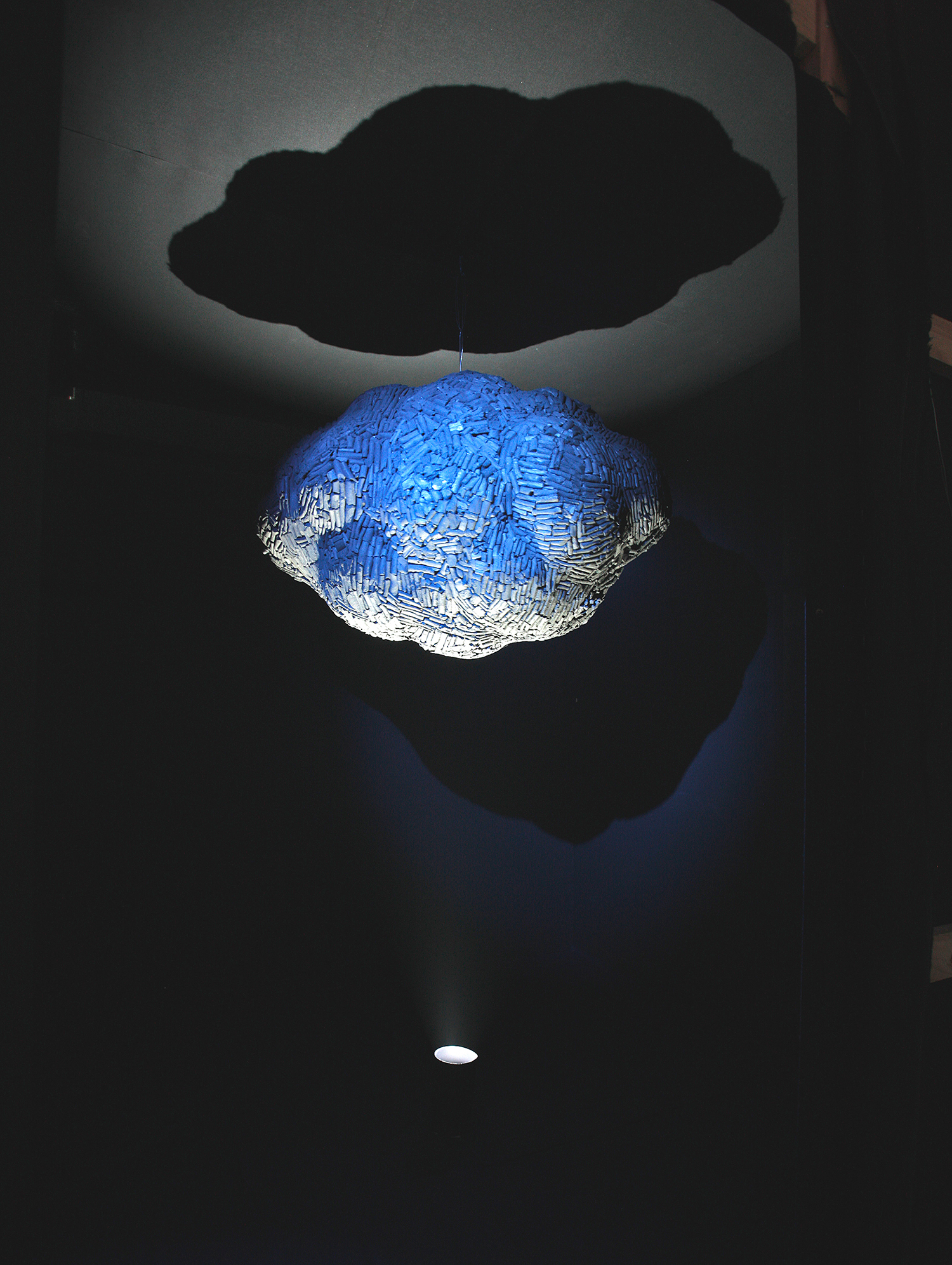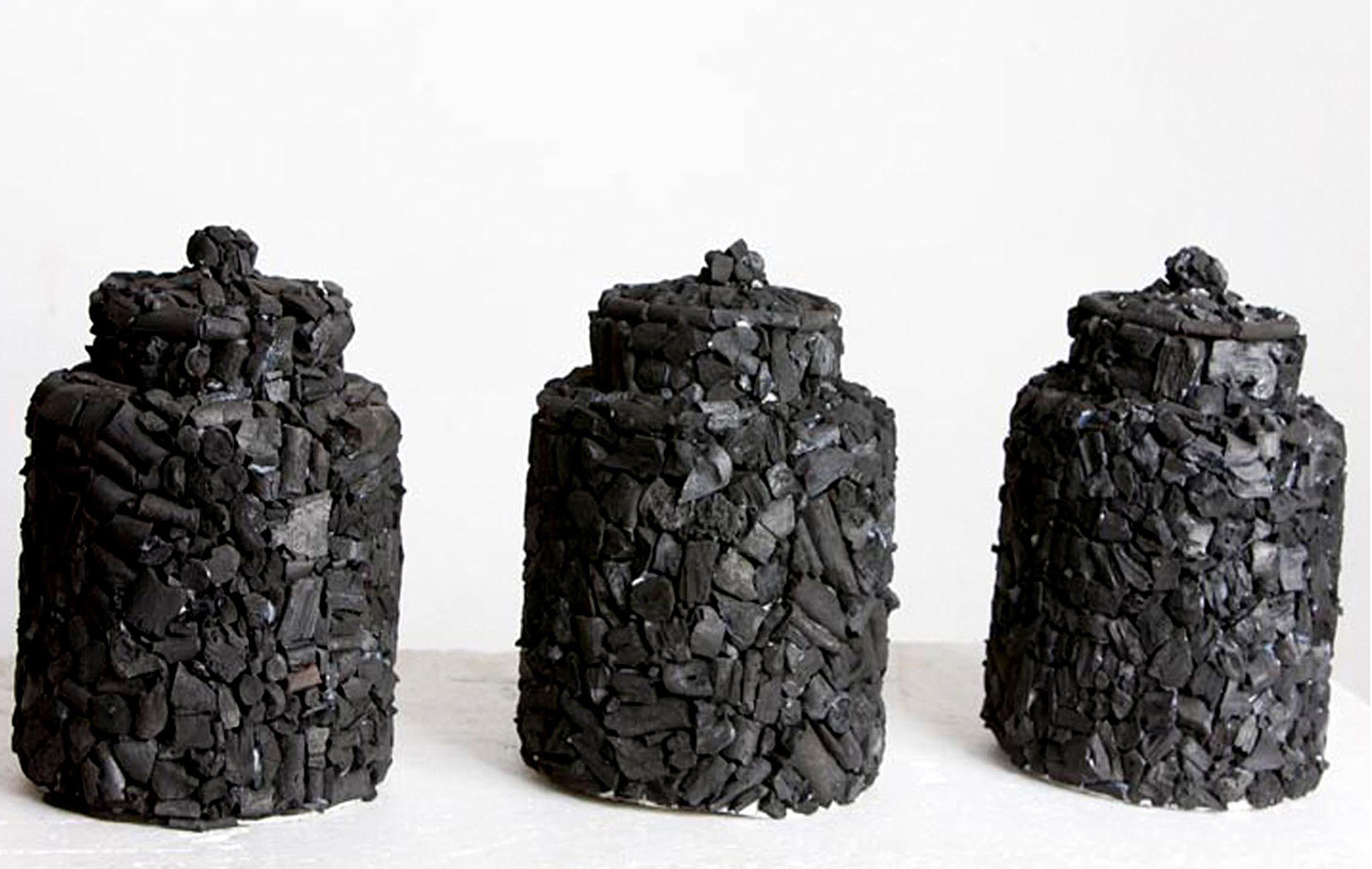 Paper pulp, cement, wood glue, aluminium, floor paint, clear coat
