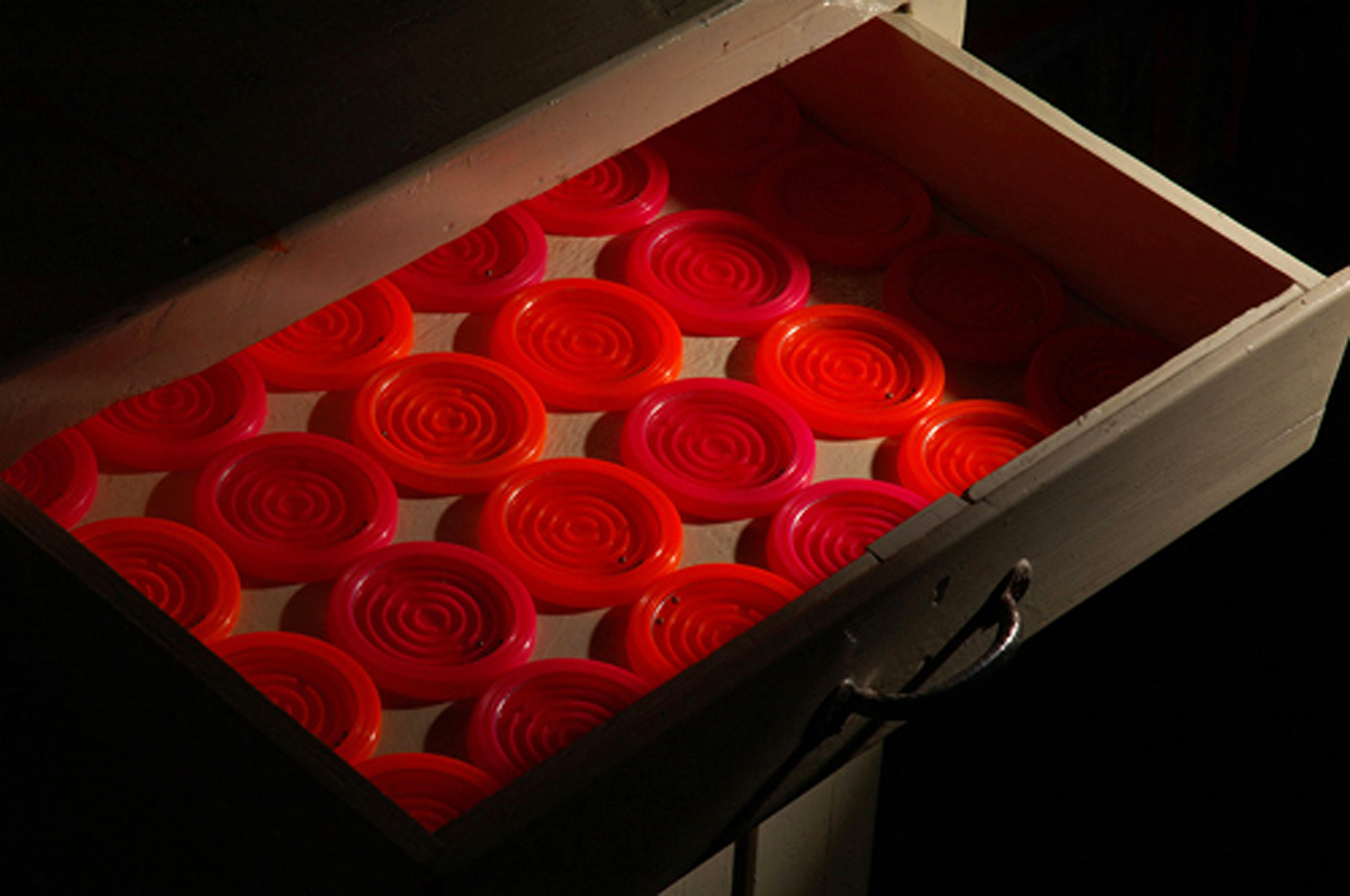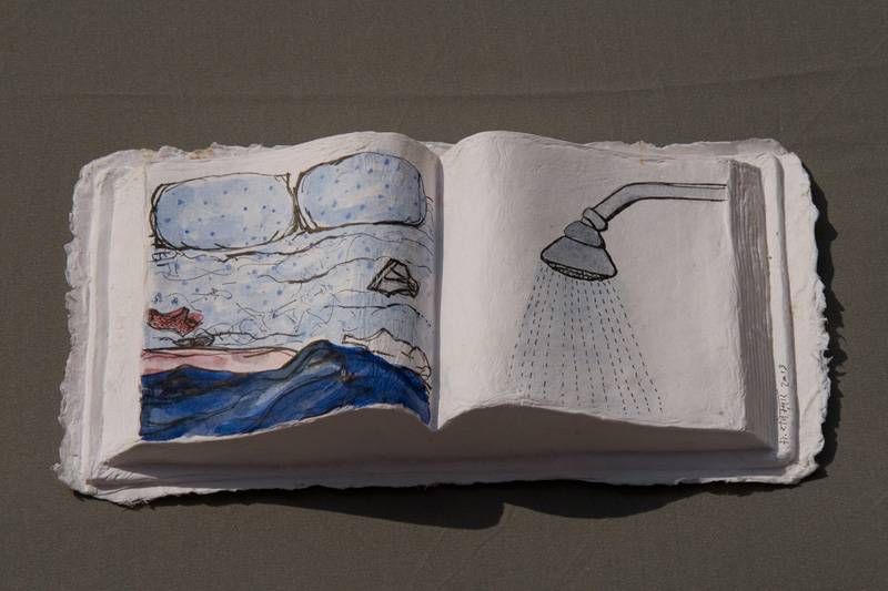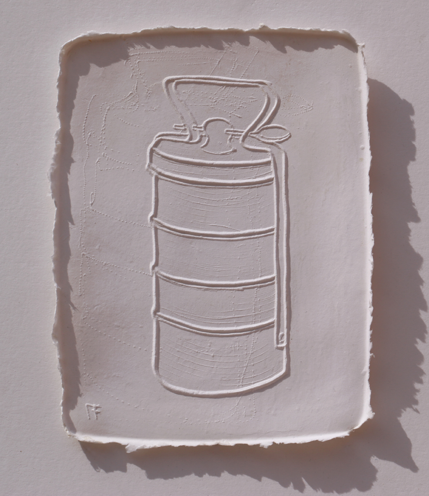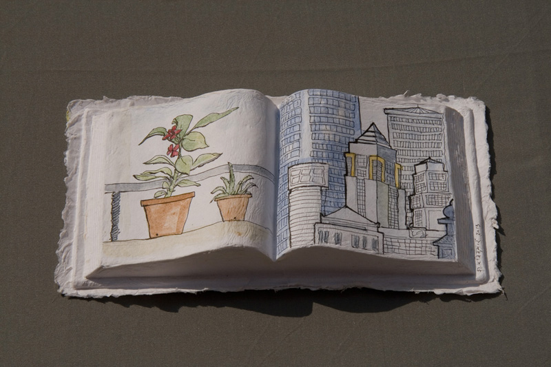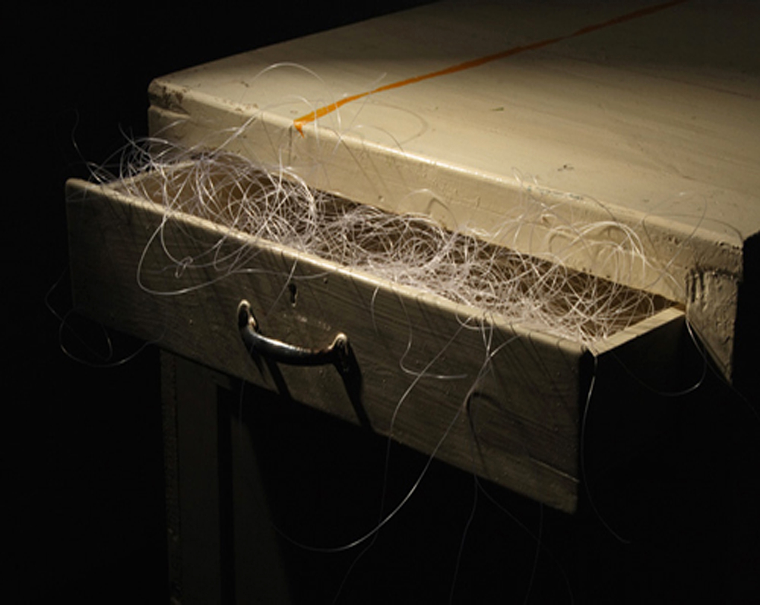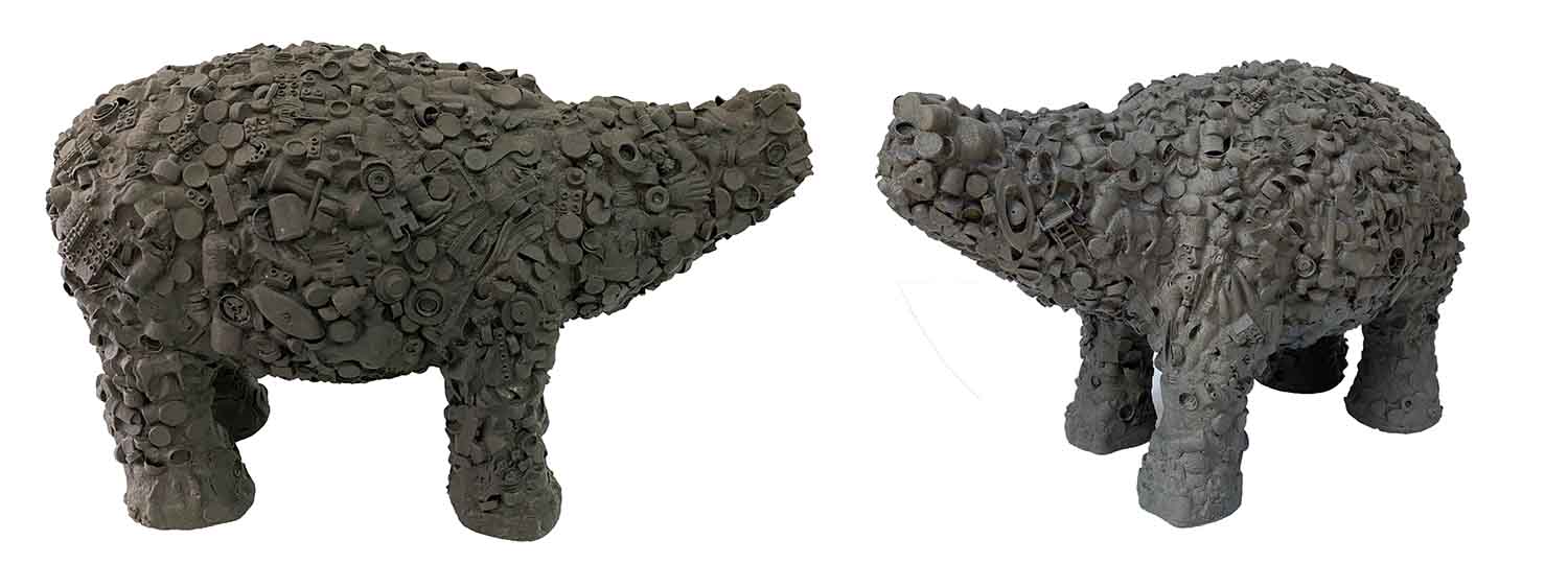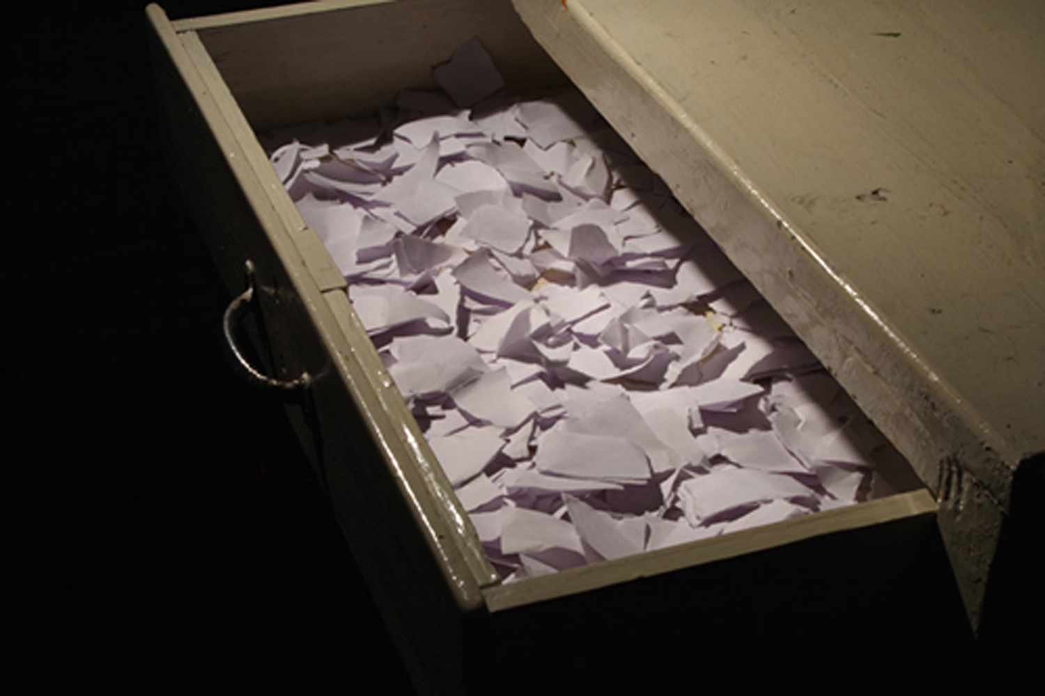Paper pulp, cement, wood glue, aluminium, floor paint, clear coat