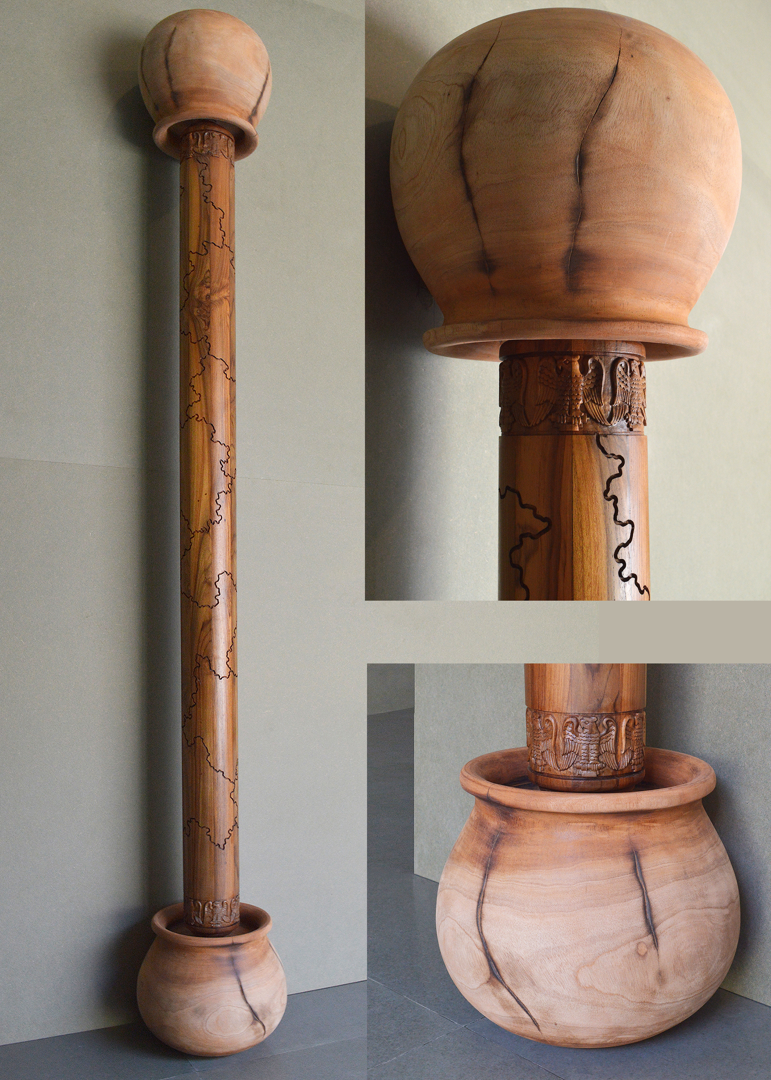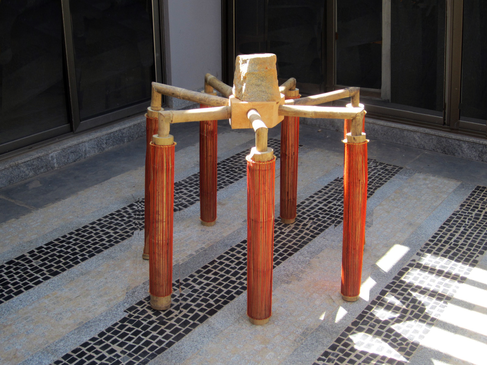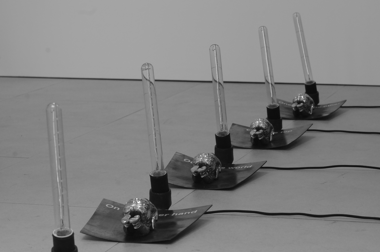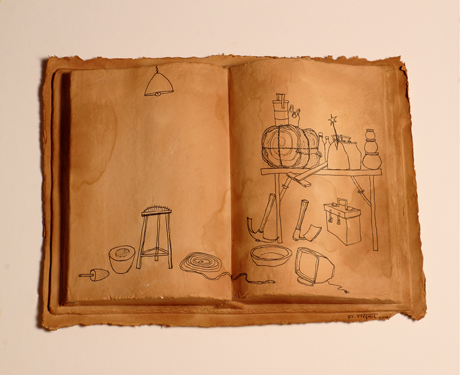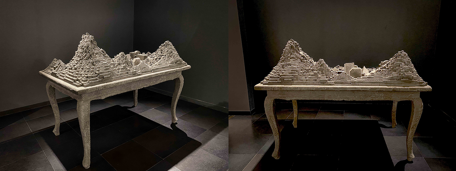 Paper pulp, cement, wood glue, aluminium, floor paint, clear coat