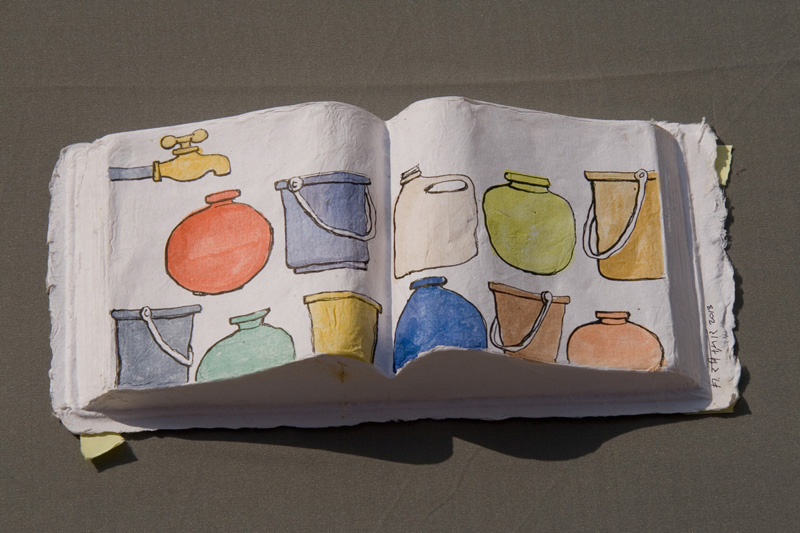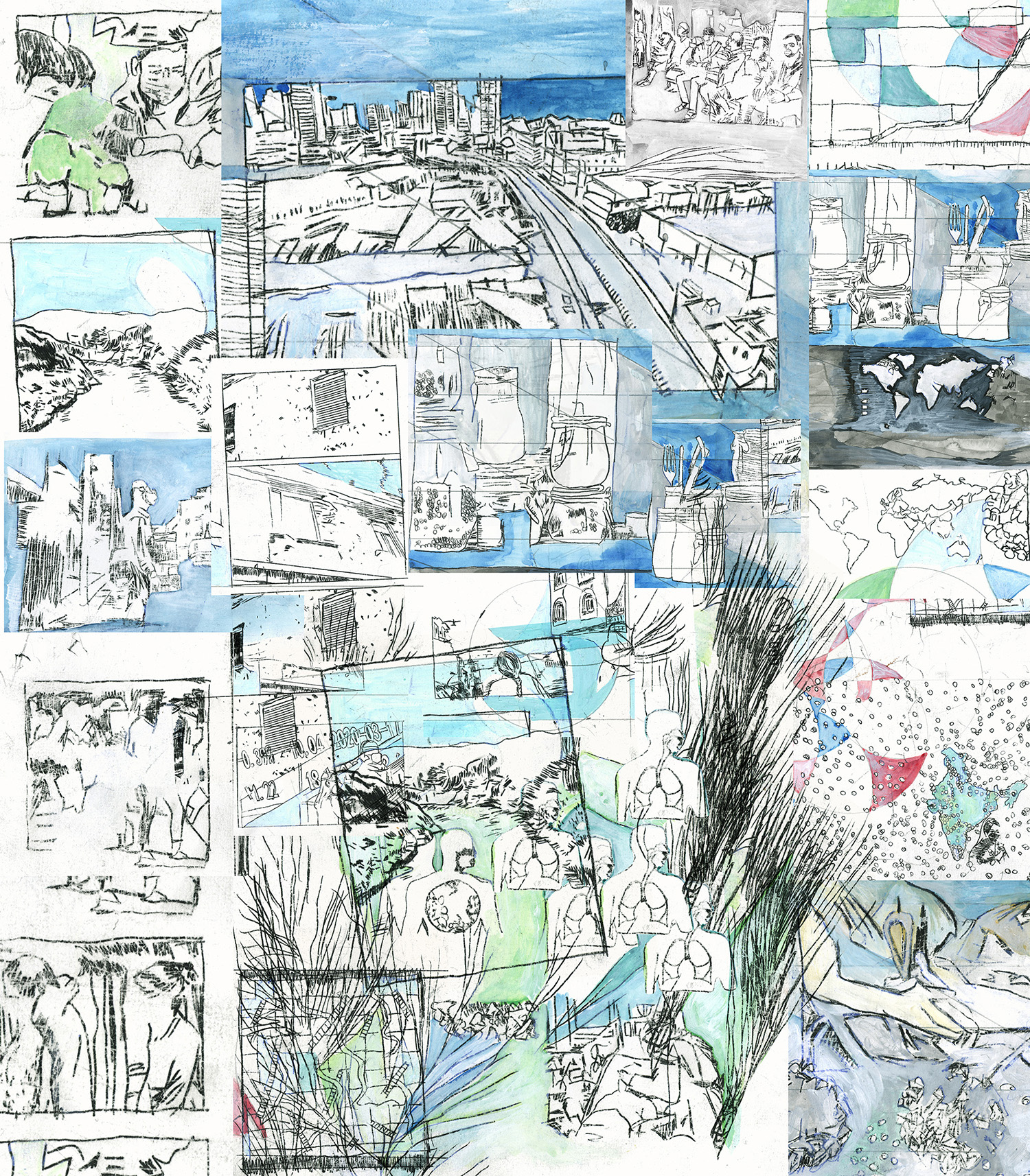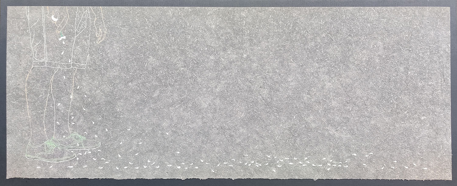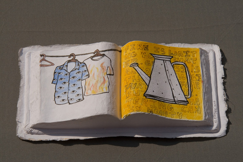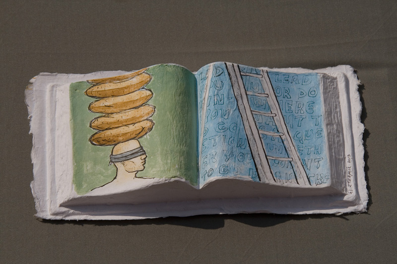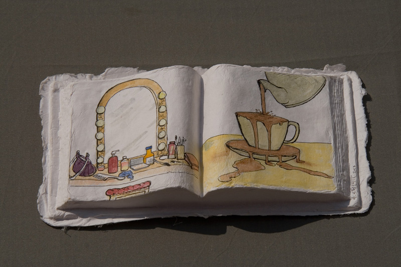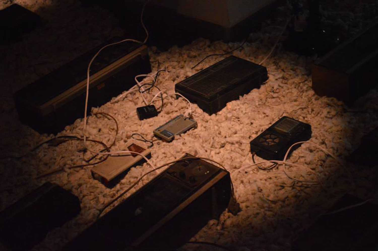 Paper pulp, cement, wood glue, aluminium, floor paint, clear coat