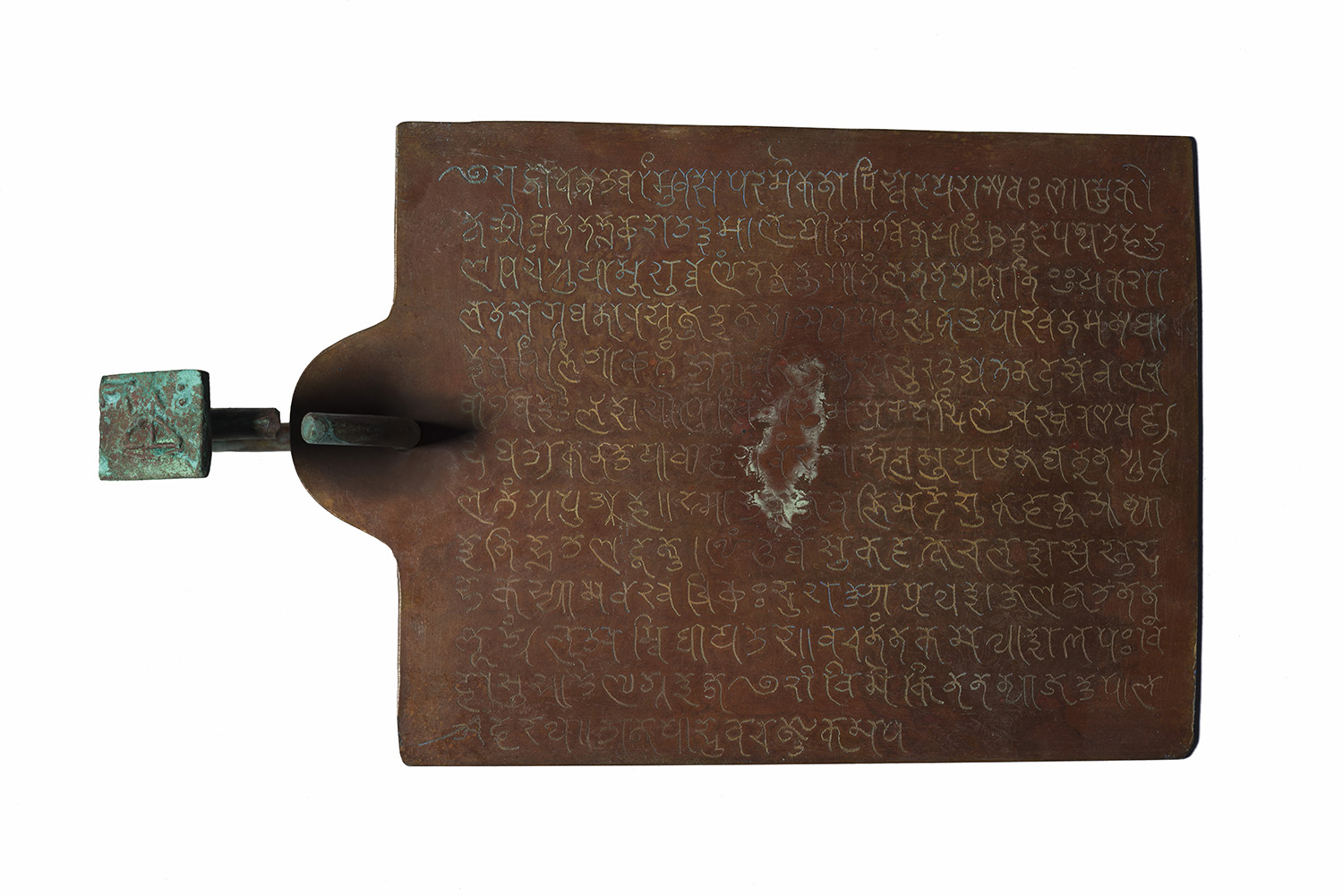 Copper with rust brown patina (script: from Sirpur plate, Nagari, Sanskri)