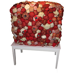 Wood table , Metal structure, Acrylic Box, Revolving screen, lights, images print on Hagnemuhle Archival Canvas, cloth balls and lenses