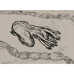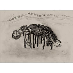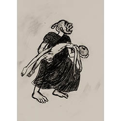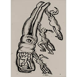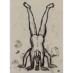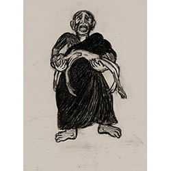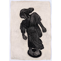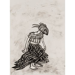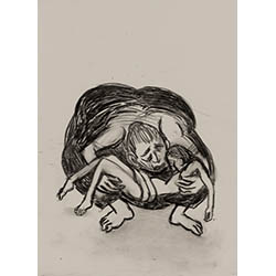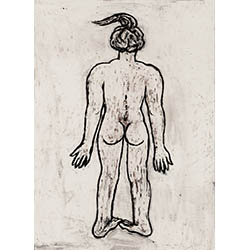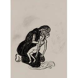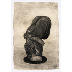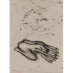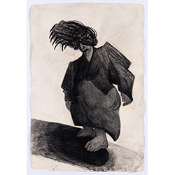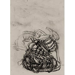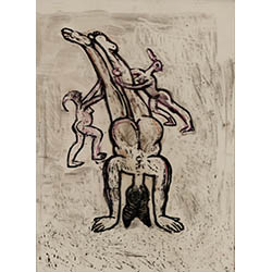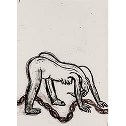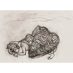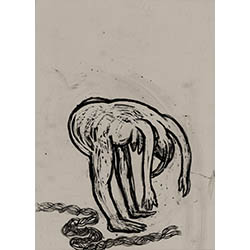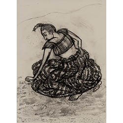 Human bodies take on peculiar forms in Shakuntala Kulkarni's drawings. Costumes and armour become fused with the body giving them bizarre appearances, and when unclothed, the figures assume convoluted and awkward postures. The images are mostly of women, for the overarching preoccupation of Kulkarni’s art has been the life of women in our society. In this exhibition, the seven series of drawings combine emblematic images of pain, violence, defeat, and also resistance and overcoming. The sense of dread is accentuated by the dominant black pigment visible in many works, and in others, a free and animated line delineates the body contour.