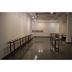 Though the artist's focus on the life of women has been a constant investigation, the forms she has explored to express these themes have been varied. Her practice has included sculpture, installation, video and performance, in addition to painting and drawing. Drawing has however taken center stage in Kulkarni’s practice: entering her studio is like entering a cave with drawings all around you. There are drawings on walls, on boards, and on pieces of paper pinned on doors. It is apparent that all the ideas for her cane armour sculptures and dresses, installations and videos have taken shape through countless drawings. Drawing being so pervasively at the heart of her varied practice, it is befitting that she is here presenting a full exhibition of only drawings.